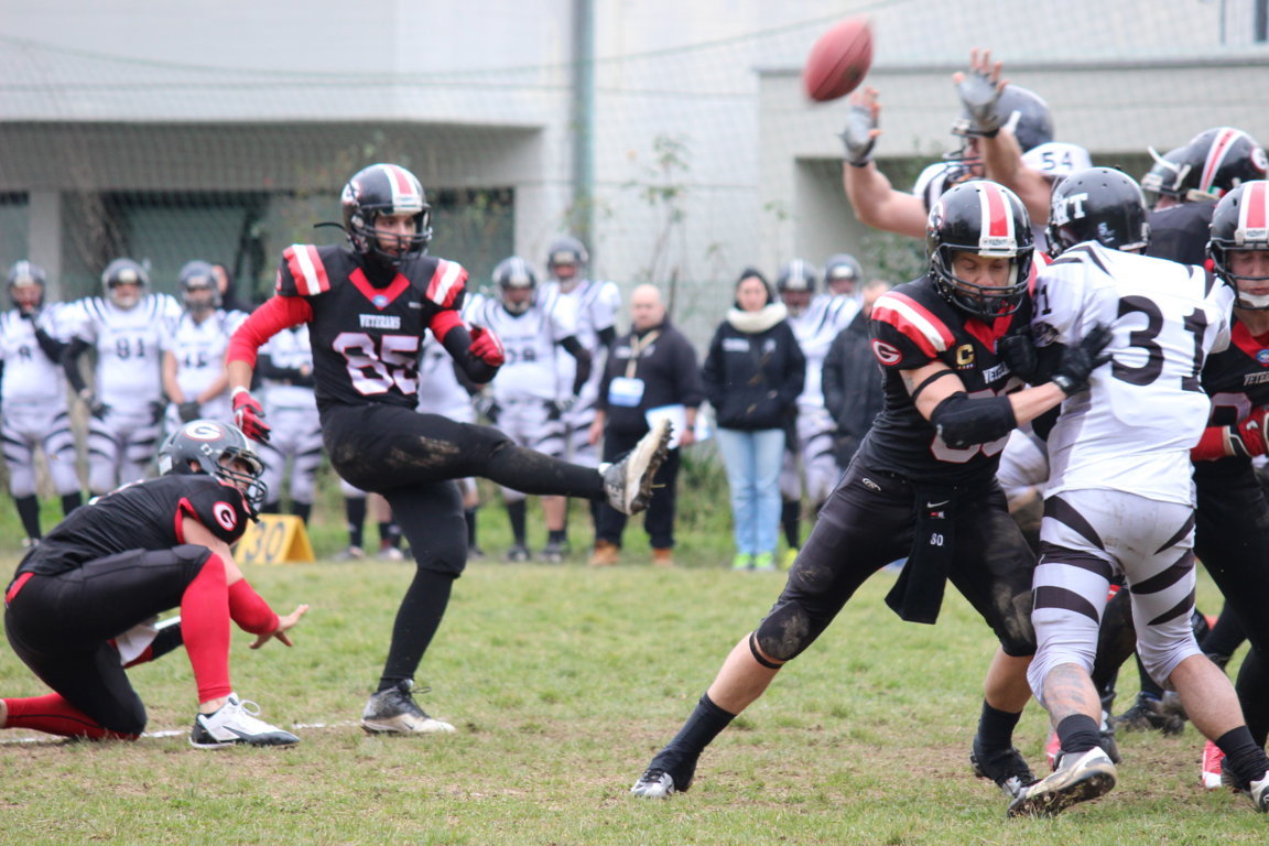 I Veterans Grosseto come un rullo compressore, asfaltano anche i Trappers Cecina, con il punteggio finale di 75/13. Impressionante il volume di gioco espresso dai ragazzi di coach Roger Casciani che dall’inizio del confronto fino alla sua conclusione, non hanno mai mollato, conquistando yard dopo yard, demolendo la difesa avversaria, incapace di contenere l’attacco maremmano. Una sorta di prova generale di quello che sarà il big match di sabato prossimo con i Red Jacket di Sarzana gli attuali campioni d’Italia. Con questo successo, salgono a tre i risultati utili consecutivi ottenuti dalla formazione di football americano di Grosseto. Tutti i giocatori hanno interpretato nel migliore dei modi la partita, seguendo diligentemente gli ordini dello staff biancorosso. Grande protagonista in assoluto uno scatenato Emanuele Cannatella, autore di ben cinque touchdown. Le sue ripetute corse, hanno messo più volte in difficoltà i Trappers. “È difficile commentare una vittoria con un margine così ampio “ Precisa Cannatella “E’ evidente che l’avversario fosse inferiore a noi. Tuttavia mi è piaciuto l’atteggiamento e la disciplina con il quale abbiamo condotto tutta la gara, era facile rilassarsi dopo un primo quarto che si chiudeva già sul 27/0 ma non lo abbiamo fatto. Positivo anche il fatto che hanno trovato spazio anche quei giocatori che si allenano con costanza ma che di solito hanno meno occasioni per entrare in campo. Per formare una squadra vincente è importante che anche le seconde linee siano all’altezza e domenica abbiamo dimostrato di avere questa caratteristica. Sabato prossimo affronteremo la nostra sfida più importante. Nonostante i miglioramenti siano evidenti in tutti i reparti della nostra squadra, affrontare i campioni d’Italia sarà il vero termometro della nostra crescita. L’ impresa sarà ardua abbiamo bisogno di sentire il supporto della nostra città, perciò sabato tutti a Istia a sostenere i Veterans!!” I Vets, sono bravi a chiudere il primo quarto sul vantaggio di 27/0, prima che una corsa di Giannini consentisse ai Trappers di respirare sul 27/7. Ma questo non ha placato la furia dei Veterans con l’attacco grossetano guidato per meta’ della partita dal giovane QB Lorenzo Madonna, che ha saputo gestire la squadra al pari di Tarroni, realizzando ben due touchdown pass su Cannatella e Leonardelli ed uno con una sua corsa laterale, entrando di prepotenza in end zone avversaria. Anche in difesa c’è stato spazio per tutti i rookie, subendo solamente 13 punti e realizzandone 6 con un touchdown spettacolare del cornerback Riccardo Setti, che ha letteralmente strappato la palla di mano ad un giocatore dell’attacco avversario ed ha riportato la palla in end zone con una bella corsa laterale. La squadra grossetana è al comando a punteggio pieno nel girone D e per la seconda giornata consecutiva i Veterans sono stati il miglior team del campionato di III Divisione. Questa volta anche miglior attacco con ben dieci touchdowns realizzati. Notizie, informazioni e tutto quello che riguarda l’attività dei Veterans è possibile leggerlo e consultarlo nel sito web della società grossetana all’indirizzo www.veterans81ers.it