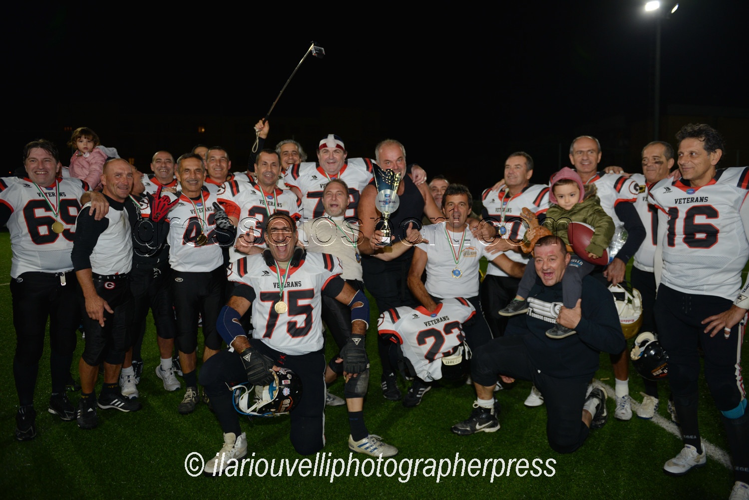 Grosseto. Si è svolta presso il campo sportivo Bruno Passalacqua di Via Australia, la prima partita ufficiale tra giocatori di football americano Over 45, dopo che la Fidaf (Federazione Italiana di American Football), ha integrato nella propria organizzazione anche questo settore amatoriale formato soprattutto da ex-giocatori della palla ovale. Si sono incontrate la squadra dei Veterans Master (farm team Veterans Grosseto) e i Masnada Hellequin (farm team Pirates Savona). Dopo i quattro tempi regolamentari ha visto la formazione di casa, i Veterans Master, 12-0, appropriarsi del Primo Master Bowl Fidaf. In questa serata di festa, l’entusiasmo e l’agonismo tangibile di questi “vecchietti” (visto che il più giovane ha superato le 45 primavere), i quali hanno dato il meglio di loro stessi, facendo vedere l’esperienza acquisita nel corso degli anni passati sui campi italiani, compresi quelli di Serie A. Il comune denominatore è la finalità benefica di ogni incontro, infatti l’ingresso a offerta è stato e sarà devoluto interamente all’associazione Skeep che si occupa di integrare i diversamente abili nello sport.