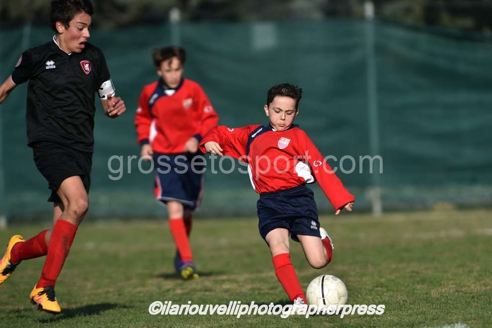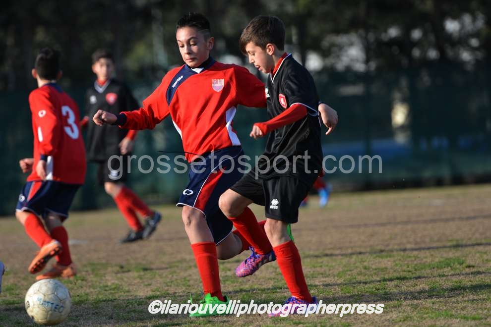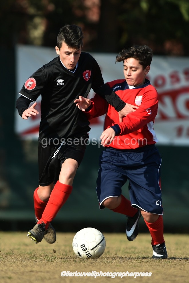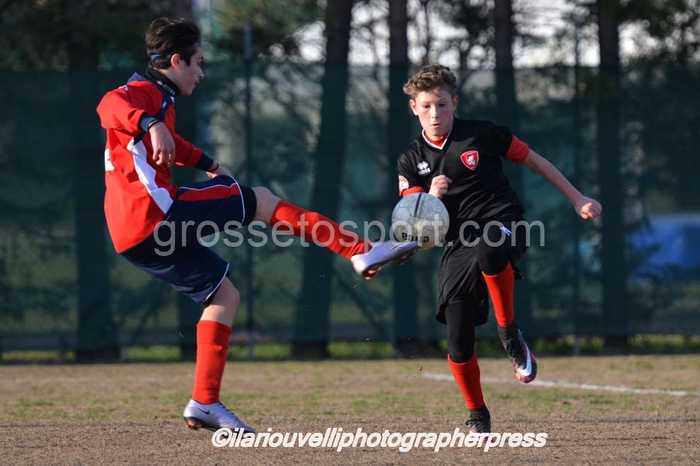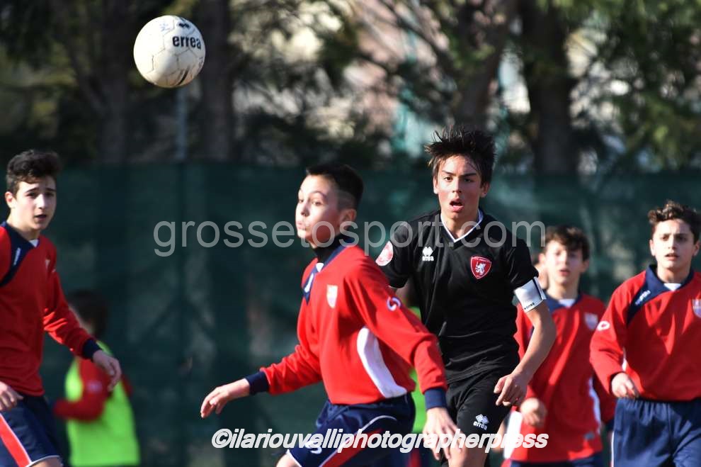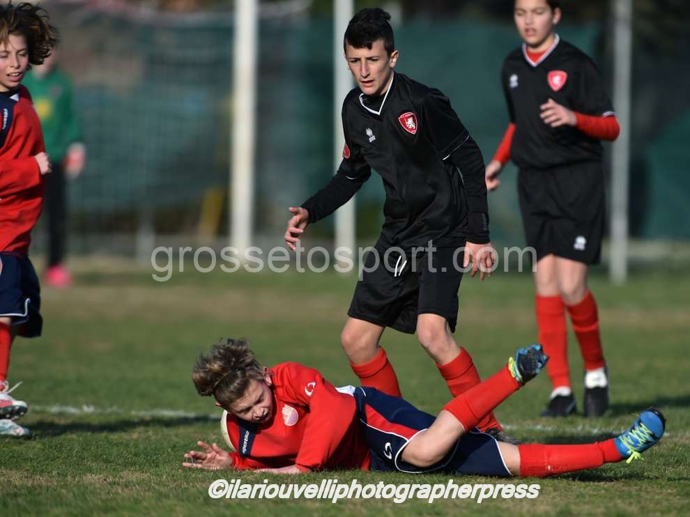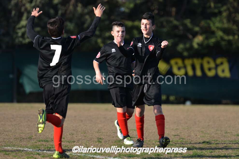 Grosseto. Al “Palazzoli” oggi si è disputato l’incontro tra Fc Grosseto e Nuova Grosseto Barbanella, valevole per il Torneo Esordienti Provinciali 2003 a 11 Girone A. I ragazzi di mister Battistini ancora una volta hanno imposto il loro gioco e la loro forza, con affondi centrali e sulle fasce e si sono visti negare persino un rigore per un fallo di mano, nettissimo, in area avversaria. La Nuova ha provato in tutti modi a imporsi, ma con risultato negativo. Dunque, al fischio finale dei tre tempi regolamentari il Grosseto ha travolto la squadra ospite per 8-0, con reti di Perella, doppiette di Nunziatini e Barontini e tripletta di Poli. I biancorossi continuano così a volare nel proprio girone, dove sono primi e a punteggio pieno.