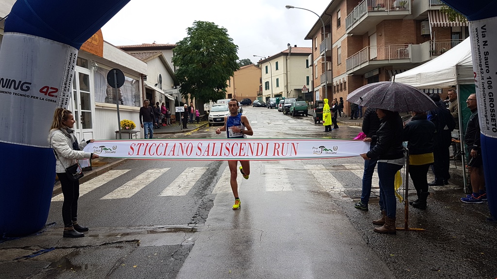 Vincono Jacopo Boscarini e Antonella Ottobrino, vincono anche Iacopo Viola e Angela Mazzoli che conquistano la classifica dell’Ultramaratona targata Marathon Bike. Ma a Sticciano, terz’ultima prova del circuito di podismo Corri nella Maremma, vince soprattutto lo sport con 101 corridori che hanno partecipato alla prima edizione della Saliscendi, sfidando il maltempo con una pioggia battente caduta copiosa sui corridori per almeno metà percorso. Se la prova maschile è stata poco più che una passeggiata per Boscarini, che ha tranquillamente controllato gli avversari, precedendo Matteo Di Marzo del Marathon Bike e il compagno di squadra Iacopo Viola dell’Atletica Costa d’Argento, spettacolare è stata la gara femminile con un arrivo mozzafiato in volata che ha premiato Antonella Ottobrino del Quarto Stormo, capace di precedere la favorita Katerina Stankiewicz, Marathon Bike; più staccata ma non troppo, a meno di un minuto, Marika Di Benedetto dell’Atletica Costa d’Argento. “Davvero un bel tracciato, tanta discesa e tanta salita – afferma il vincitore Jacopo Boscarini – cercheremo di riproporla anche all’Argentario. Ho fatto una buona salita, la discesa era bagnata e ho preferito controllare. Quest’anno ho fatto tante gare, molte sono andate bene, prima o poi vorrei riuscire a fare anche una bella maratona. E’ stata una bella stagione per il circuito, una bellissima vetrina per tanti paesi della nostra provincia”.“Grande vittoria – esulta Ottobrino – la gara è stata davvero faticosa anche se molto bella. Oggi per la prima volta ho battuto Katerina in un arrivo in volata che praticamente non si era mai visto, favorito anche da questa discesa. Ora penso alla mezza maratona di Verona nella quale vorrei migliorare il mio tempo”. Iacopo Viola, invece, terzo assoluto, ha vinto l’Ultramaratona: un premio alla costanza del corridore che ha partecipato a tutte le gare. “Ho iniziato a correre nel 2012 – racconta – e da allora per me è stata come una droga. Un amico di Marsiliana, che è il mio paese, mi vedeva allenarmi sempre nelle nostre macchie e mi portò a una corsa, da lì è nato tutto”. Nonostante il fisico non proprio da podista Viola si sta togliendo belle soddisfazioni. “E’ vero, ho un fisico muscolare – afferma – però mi diverto molto ed è questo l’importante. Peccato per le condizioni meteo qui a Sticciano, ma il percorso è davvero bello. La salita non è il mio terreno preferito, ma stavolta andato bene e poi sono riuscito a tenere in discesa. Felice sia per il posto sul podio che per la vittoria nell’Ultramaratona”. Un successo da dividere con la compagna di squadra Angela Mazzoli, pure lei sempre presente. “Ho cercato di fare tutte queste prove ed è andata bene – sorride – Qui a Sticciano è stata dura, tanta salita, la discesa era scivolosa per la pioggia e per le ghiande lungo la strada. Non ero mai stata a Sticciano, il paese mi piace, ora cerchiamo di chiudere al meglio la stagione con le ultime due tappe”. A dare il via alla corsa e a premiare i vincitori il sindaco di Roccastrada, Francesco Limatola. “Un grande successo per questa gara – spiega Limatola – considerando che si trattava della prima edizione, corsa sotto la pioggia, oltre 100 partenti è davvero un ottimo traguardo. Sticciano – ricorda il primo cittadino – è una delle tre prove inserite nel circuito provinciale Corri nella Maremma, aveva un percorso di straordinaria bellezza che aveva il suo punto più alto nel paese, davvero una terrazza sul nostro territorio. Dopo Corri nella Miniera e la Marcia Verde, Roccastrada si conferma un territorio di sport e in particolare di podismo, perché lo sport fa bene ed è anche promozione del nostro territorio”.