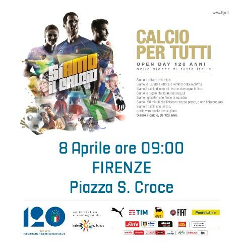 Firenze. Domenica 8 Aprile a Firenze in Piazza Santa Croce dalle 9 alle 12,30 si svolgeranno le celebrazioni del 120° anniversario della fondazione della Federazione Italiana Giuoco Calcio attraverso un evento ludico sportivo rivolto ai calciatori in erba.