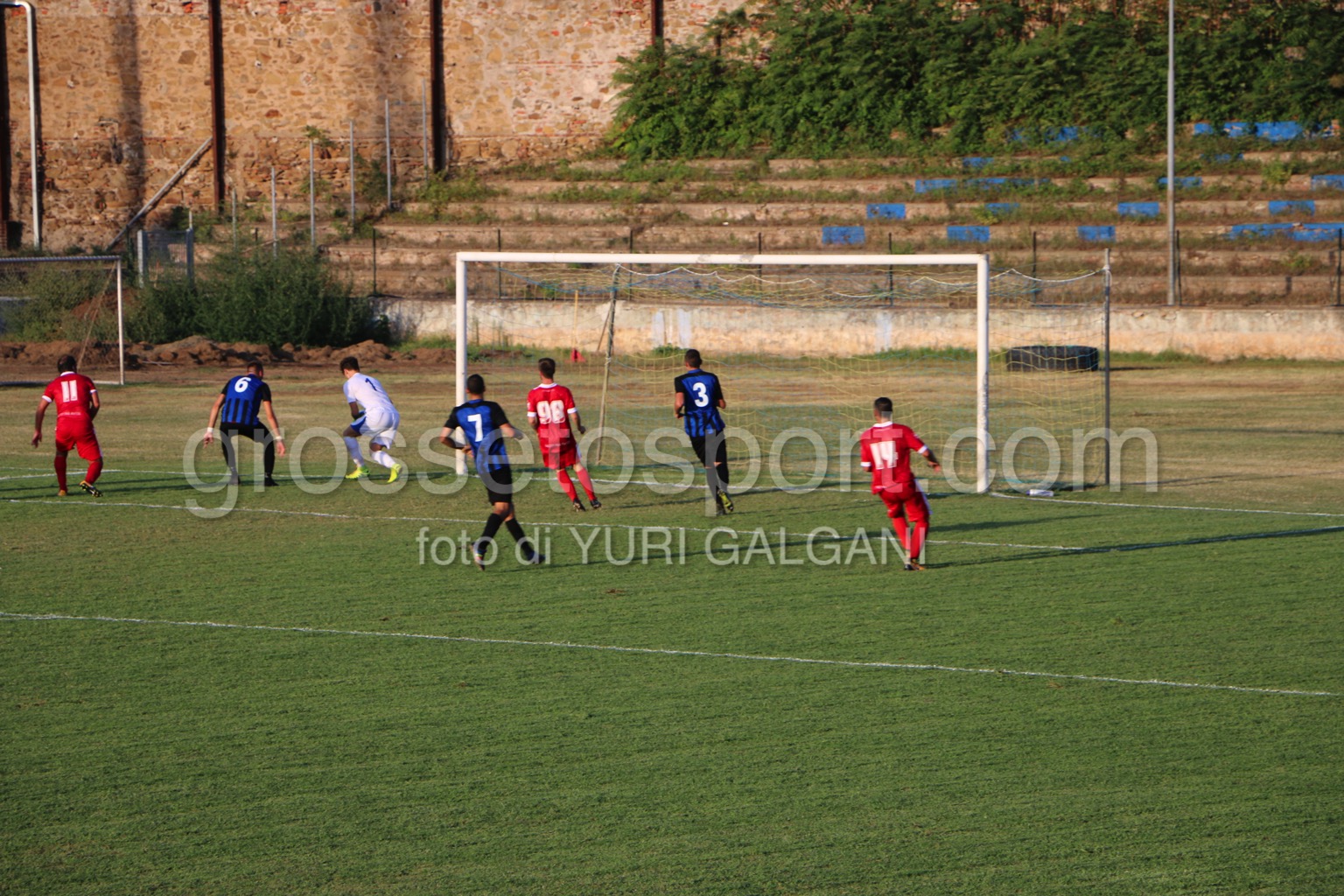 Al 57′ su azione da calcio d’angolo è Ciolli a trovare l’inzuccata giusta per il gol del pari. I padroni di casa calano notevolmente ed i biancorossi ci provano. A dieci dalla fine si fa espellere D’Angina per una brutta entrata e all’83’ è Gorelli sempre su corner a portare avanti i grossetani.