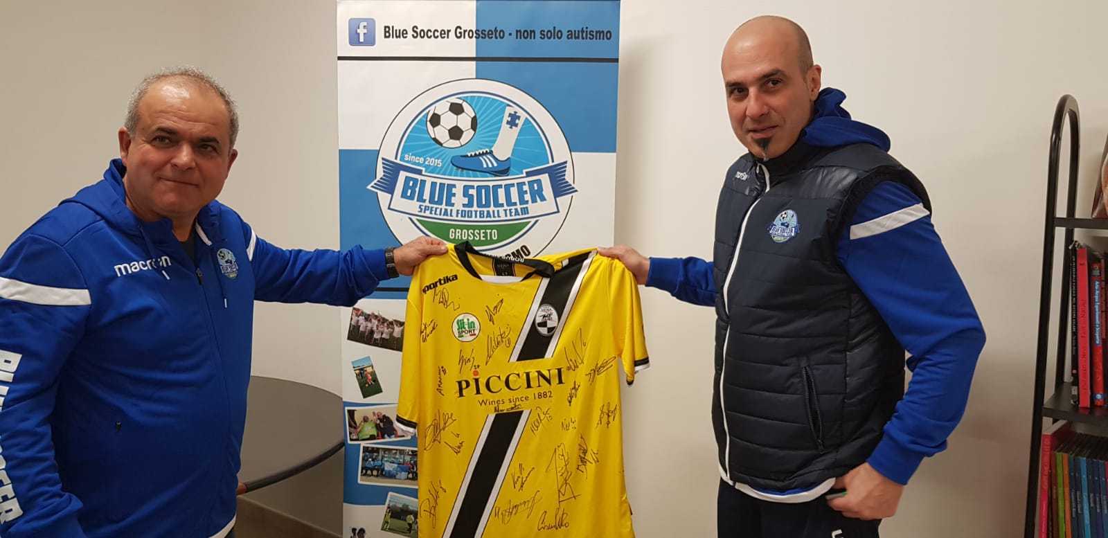 Grosseto Sabato scorso, presso l’associazione Iron mamme, sono state consegnate alla squadra speciale del Blue Soccer le tute ufficiali grazie alla sponsorizzazione fatta da Piero Camilli tramite l’azienda Ilco. Ricordiamo che la predetta formazione è costituita sia da ragazzi affetti da varie forme di disabilità che da normodotati. Nell’occasione, poi, è giunta da Siena la maglia della squadra bianconera tutta autografata. Questi sono gli elementi che compongono il team Blue Soccer:
