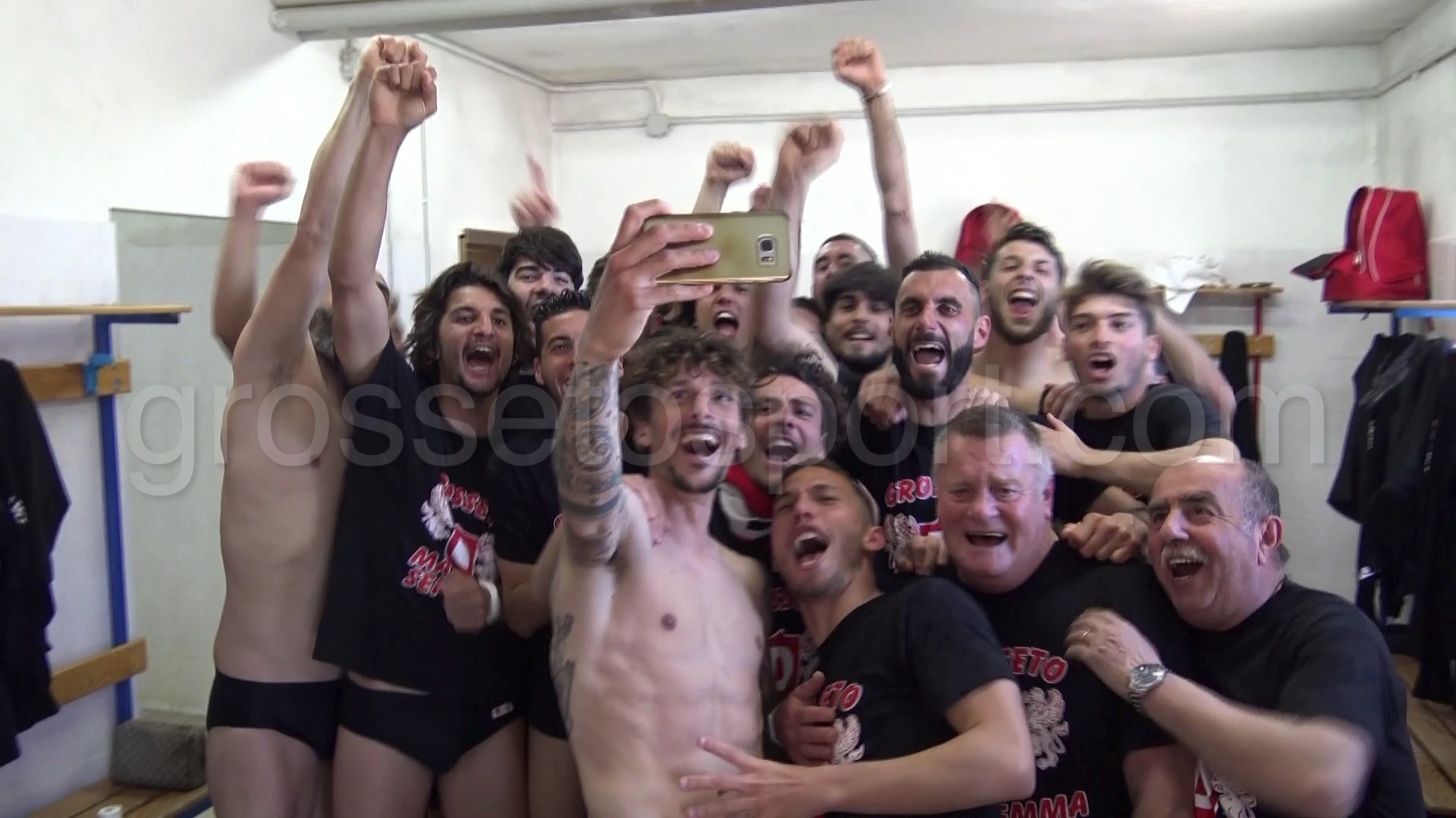 Gs Tv – il Grosseto è promosso in D e la squadra festeggia con un “selfie” al rientro negli spogliatoi
