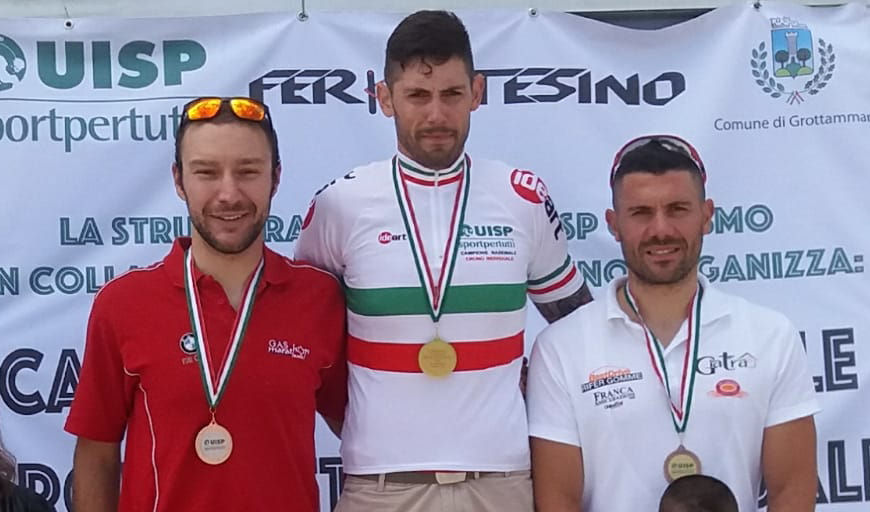 Appena il tempo di festeggiare il successo di Cristina Gamberi nella gara podistica di Baratti sabato scorso, che il Marathon Bike piazza un’altra prestigiosa vittoria. E’ stato Francesco Bacci che ai campionati nazionali di cronometro Uisp di Grottammare ha collezionato un’altra maglia di campione nazionale di cronometro individuale. È la seconda dopo quella conquistata nella cronometro a quattro di Marina di Pisa con i compagni di squadra Giorgio Cosimi, Alessio Minelli e Alessandro Guidotti. Una lotta in “famiglia” la cronometro nazionale di 14 chilometri e 800 metri di Grottammare, visto che ad insidiare sino all’ultimo l’ambita maglia è stato proprio un altro atleta Marathon Bike ovvero Alessandro Guidotti. Partiti a distanza di quattro minuti, Bacci alle ore 10.50 mentre Guidotti alle 10.56, alla fine “solo” 18 secondi hanno separato i due amici-avversari per un giorno con i tempi di 19’43 per lo sticcianese contro i 20’01 di Guidotti. Al terzo posto si piazzava Fabio Ricciardi del Pedale Fermano che tagliava il traguardo dopo 20 minuti e 34 secondi. Per Bacci quindi la conquista di un’altra maglia tricolore importante, ma con la casella delle vittorie stagionali assolute ancora vuota, nonostante tante gare da protagonista con una serie infinita di secondi posti a partire dal trofeo “mbm” di inizio anno, al trofeo “Montemassi”, poi ancora una piazza d’onore al trofeo “Gualtiero Luzzetti” di Pasquetta, e per finire un secondo posto alla medio fondo di Castiglione Della Pescaia. Nel mezzo a tanti secondi posti anche un terzo assoluto al trofeo “Bozzone” di Vetulonia