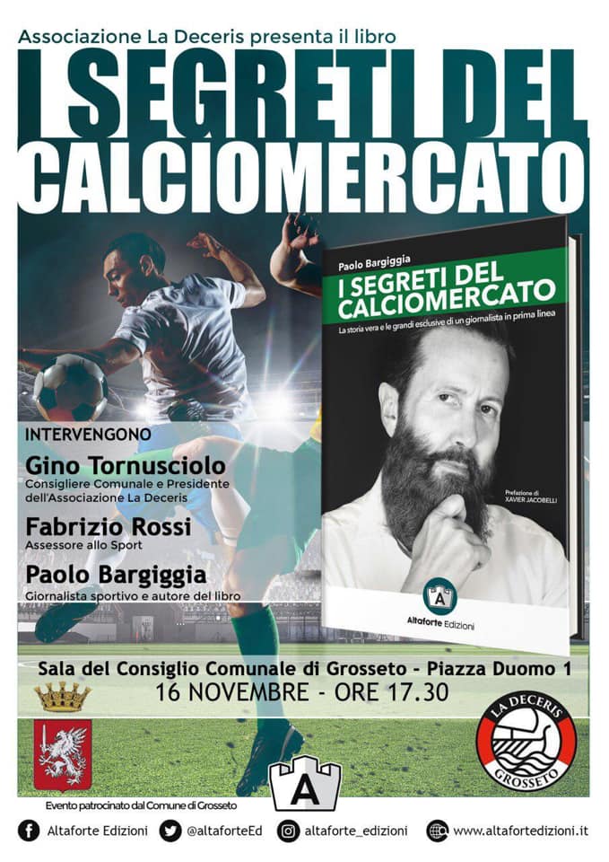Grosseto. “I segreti del Calciomercato”, il nuovo libro di Paolo Bargiggia che racconta tutti gli scoop e cosa si cela dietro una trattativa. La presentazione avverrà sabato pomeriggio alle ore 17,30 presso la sala consiliare del Comune di Grosseto.