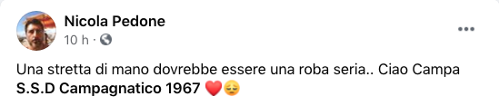 Campagnatico – Si separano le strade tra il Campagnatico ed il tecnico Nicola Pedone. Ad annunciarlo è lo stesso allenatore sul proprio profilo facebook.