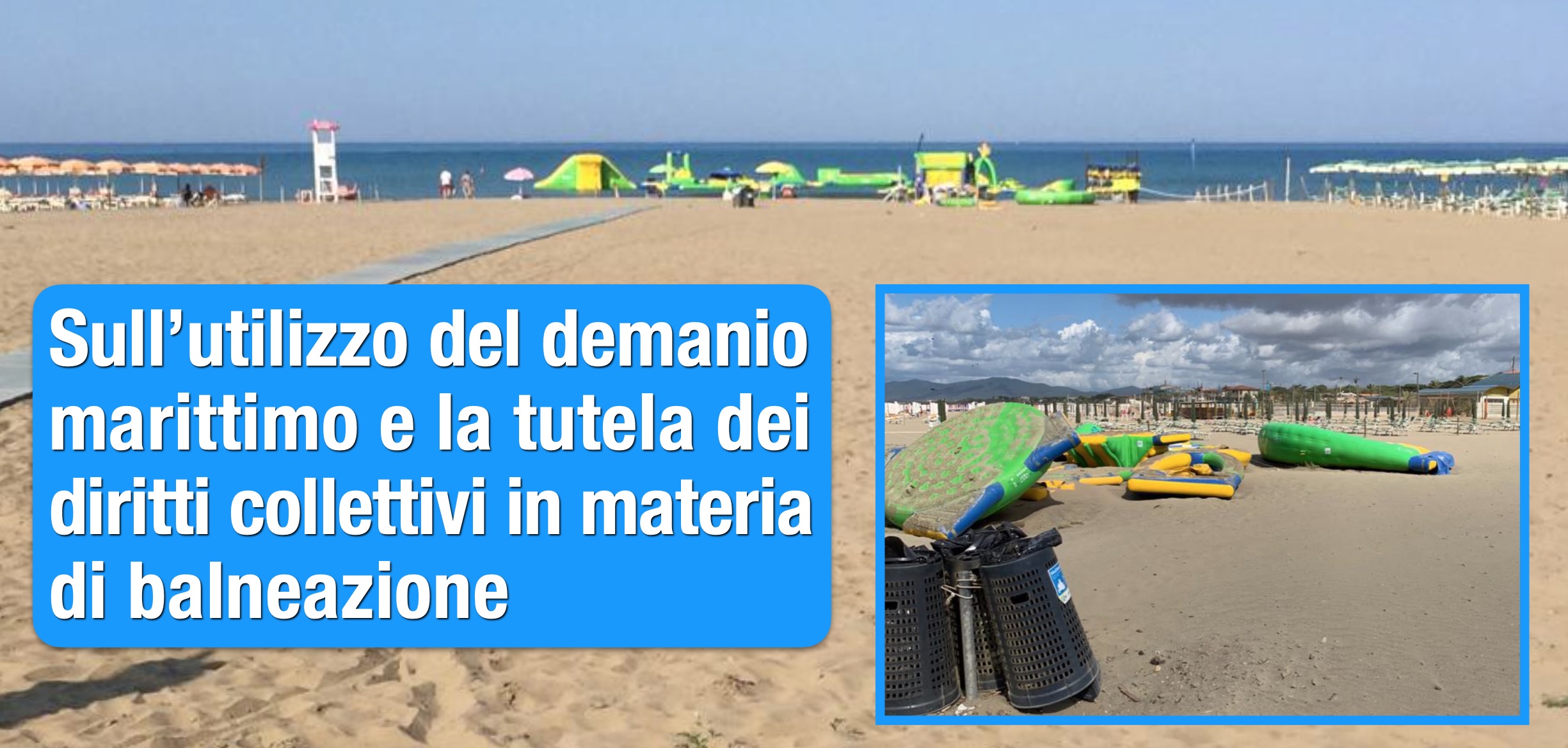 In merito al caso specifico si chiede espressamente che l’Amministrazione comunale, stante l’eccezionalità della stagione caratterizzata dalla fase post-Covid e dal conseguente obbligo di distanziamento sociale, sospenda allo stato quella concessione per ripristinare l’assoluta e totale fruibilità di quello spazio di arenile pubblico, con contestuale avvio di un procedimento finalizzato alla revoca dell’atto concessorio con individuazione di altre aree, fuori dai centri abitati, ove consentire tali installazioni ludiche.