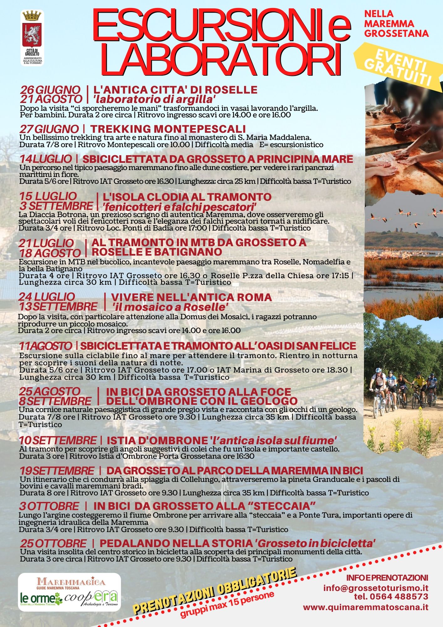 Biciclettate, laboratori anche per i più piccoli, trekking e altre attività per poter apprezzare in maniera inedita il ricco patrimonio storico, culturale e naturale della Maremma.