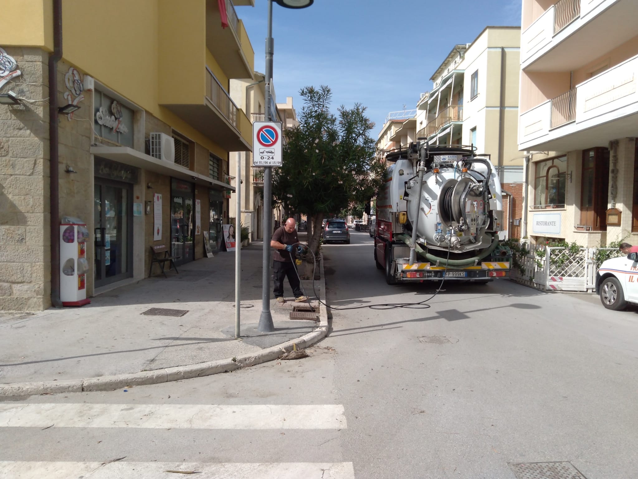 L’operazione si è resa necessaria in seguito alle forti piogge che si sono abbattute sul nostro territorio e specialmente a Marina nel pomeriggio di martedì 22 settembre, allagando alcuni esercizi commerciali presenti sulla via.