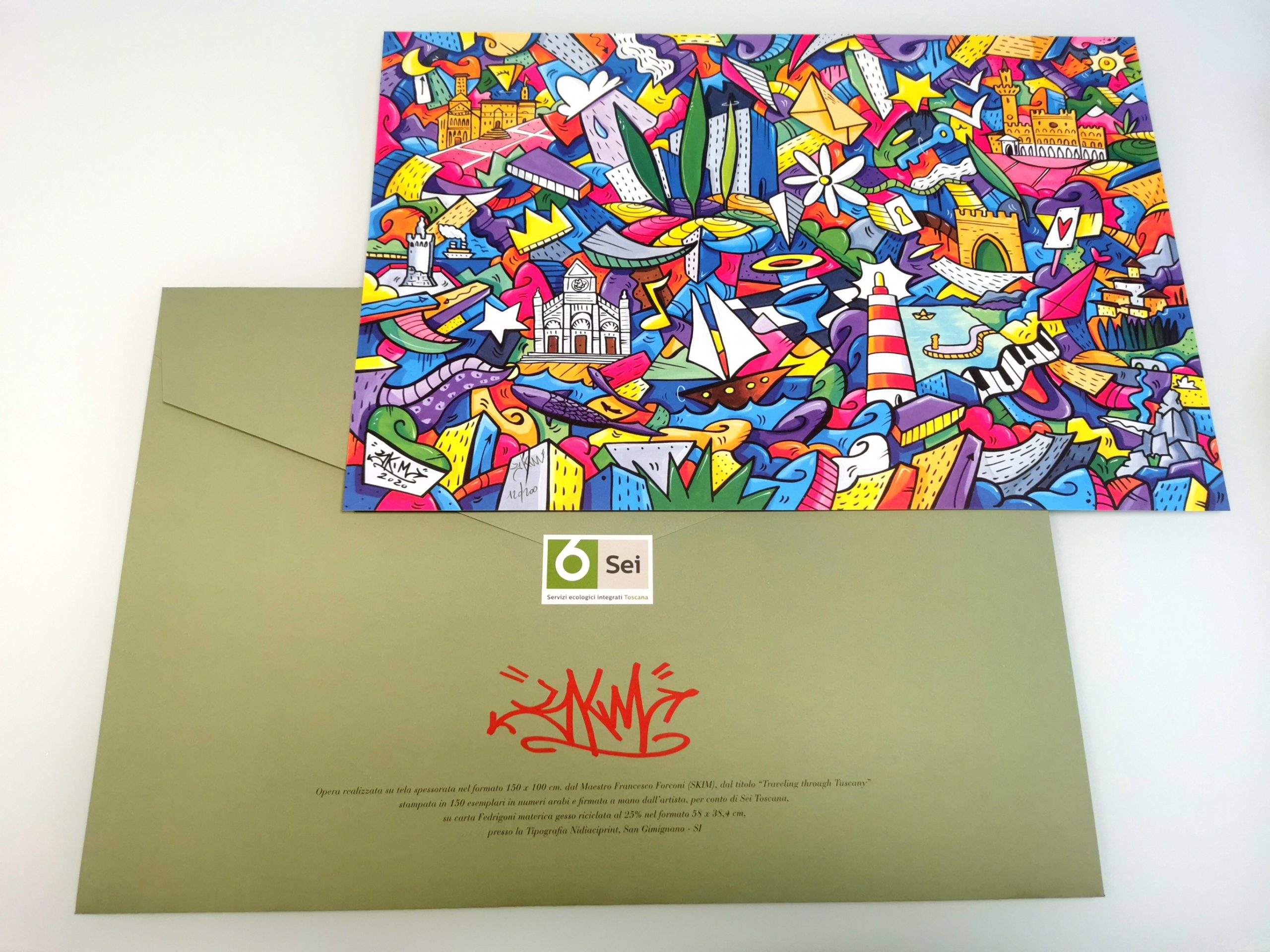 L’opera d’arte di questa seconda edizione del progetto è “Traveling Through Tuscany“, realizzata dal maestro Francesco Forconi, in arte SKIM.
