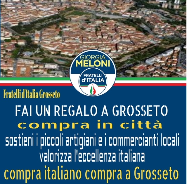 “Il momento attuale che stiamo vivendo, imposto dalla pandemia Covid-19 è davvero difficile per tutti e anche la nostra comunità, sia cittadina, che provinciale, non ne è rimasta purtroppo indenne. Pertanto, oggi più che mai, riveste particolare e fondamentale importanza, sostenere le imprese locali e i nostri commercianti, acquistando prodotti italiani e del territorio maremmano”. A dirlo sono Fabrizio Rossi, coordinatore regionale Fratelli d’Italia Toscana, e Bruno Ceccherini, commissario provinciale FDI Grosseto.