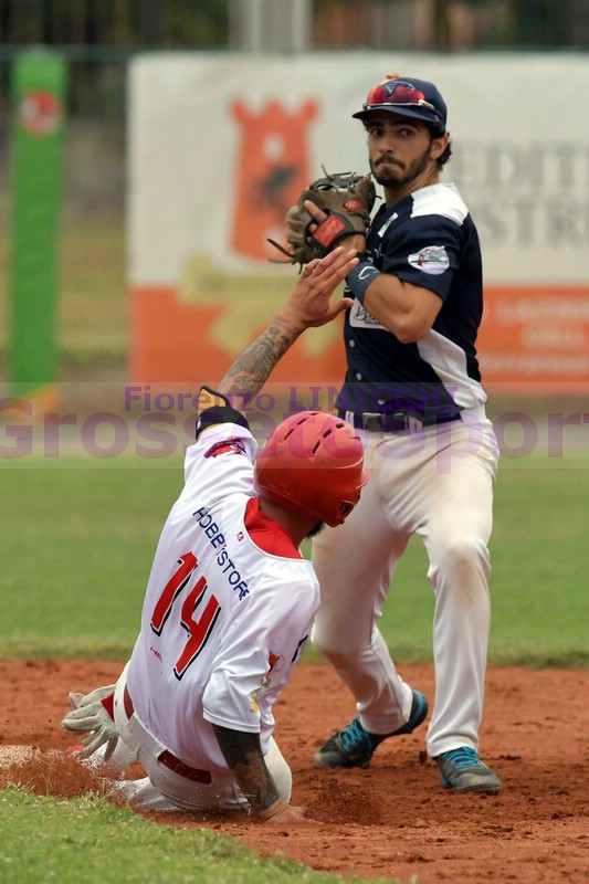 I lanci di Erick De La Rosa (6IP, 2H, R, 2BB) e Jhonaikel Rodriguez (3IP, H, BB, 6K) mettono in crisi il Sultan Cervignano, sconfitto in gara uno per 4-1 dal Metalco Dragons Castellana che soffre Ramon Perez per oltre metà partita prima di rompere il ghiaccio con un singolo di Samuel Bellafiore nel sesto e poi con un fuoricampo da due punti di Carlos Guevara nella parte alta del settimo inning. Chiude i conti un doppio di Ernesto Exposito nell’ottavo inning. Gli equilibri cambiano bruscamente nel match pomeridiano, vinto dal Cervignano per 10-0 al settimo inning con i lanci di uno scatenato Elias Jimenez, autore di 16 strikeout su sette riprese lanciate con appena quattro valide ed altrettante basi su ball lasciate ai Dragons, che non ne approfittano. In battuta grande prestazione per Giacomo Boscarol (3-4, 4PBC).