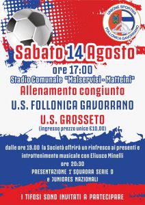 Sabato prossimo, 14 agosto, alle ore 17, allenamento congiunto tra Us Follonica Gavorrano e Us Grosseto al Malservisi di Bagno di Gavorrano. La sgambatella amichevole sarà aperta al pubblico (nel pieno rispetto delle norme anti-Covid 19, dunque con la necessità di green pass) al costo di 10 euro. Sarà il primo test estivo per i ragazzi di Bonura (neo allenatore biancorossoblù), visto che hanno iniziato la preparazione solo oggi. I biancorossi, invece, dopo circa un mese di lavoro, andranno alla ricerca degli automatismi in vista della Coppa Italia e del campionato. Al termine del match, poi, la società biancorossoblù offrirà un rinfresco ai presenti, mentre dalle ore 20.30 ci sarà un intrattenimento musicale che precederà la presentazione della prima squadra (partecipante al campionato di Serie D) e di quella Juniores.