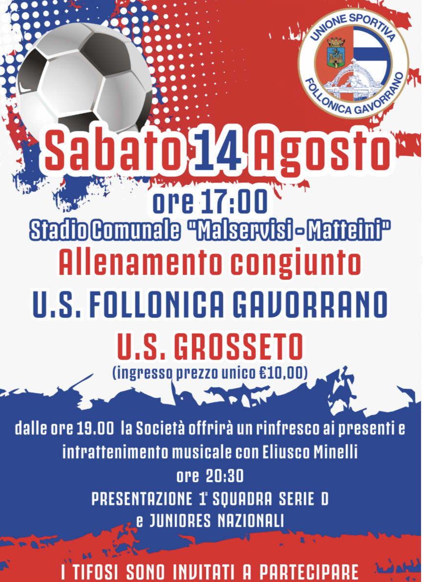 Follonica – L’allenamento congiunto che si disputerà sabato 14 alle ore 17 allo stadio “Malservisi Matteini”, sarà aperto al pubblico e a tutti gli sportivi.