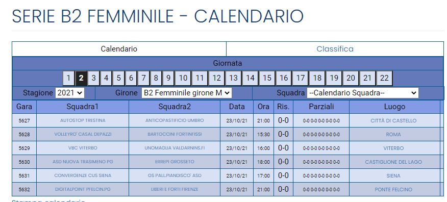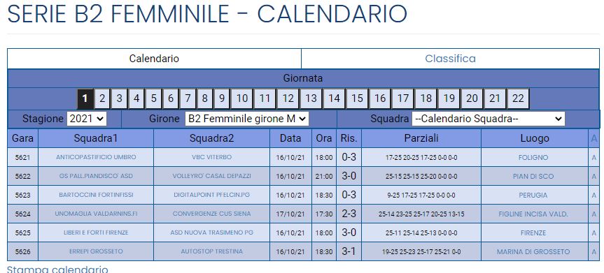 Serie B2 femminile Girone M risultati prima giornata