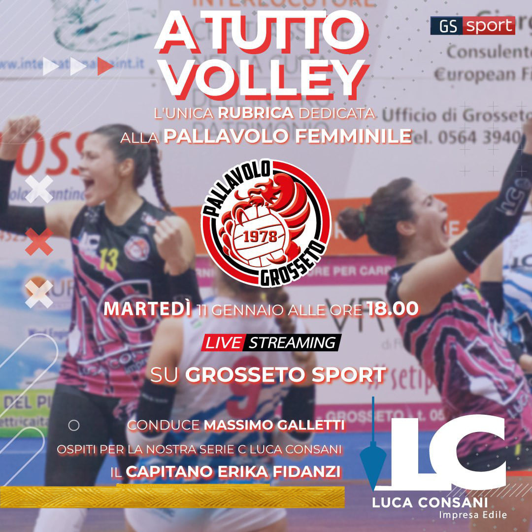 Appuntamento alle ore 18,00 in diretta con la trasmissione “A tutto Volley” in collaborazione con le società Pallavolo Grosseto 1978, Grosseto Volley School e Pallavolo Follonica. Ospiti in studio con Massimo Galletti, Erika Fidanzi giocatrice della Pallavolo Grosseto 1978, Victoria Maria Colucci, giocatrice del Grosseto Volley School e Annalisa Milani giocatrice della Pallavolo Follonica. Regia, montaggio e riprese di Fabio Lombardi
