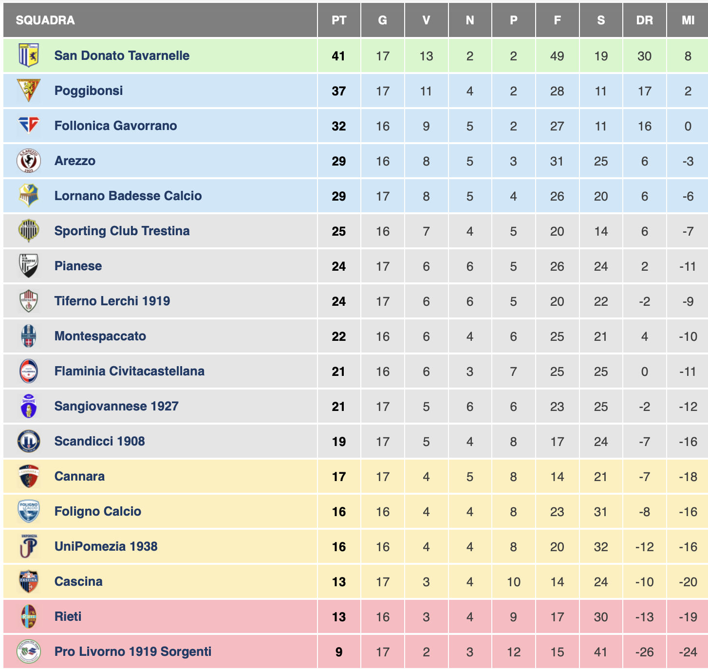 Follonica – Con il Follonica Gavorrano fermo ai box per il numero di casi di positività al Covid si sono disputate le altre gare del girone “E” di Serie D.