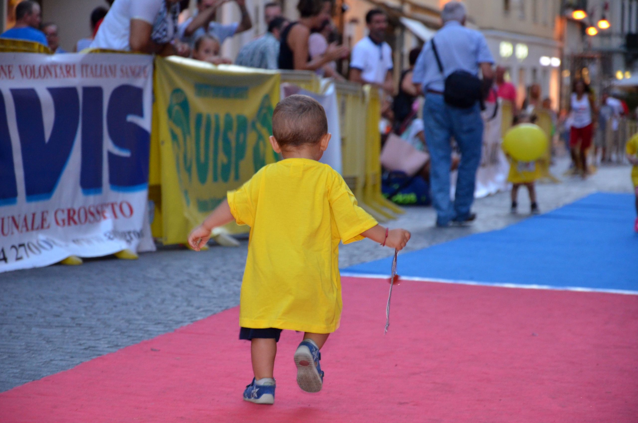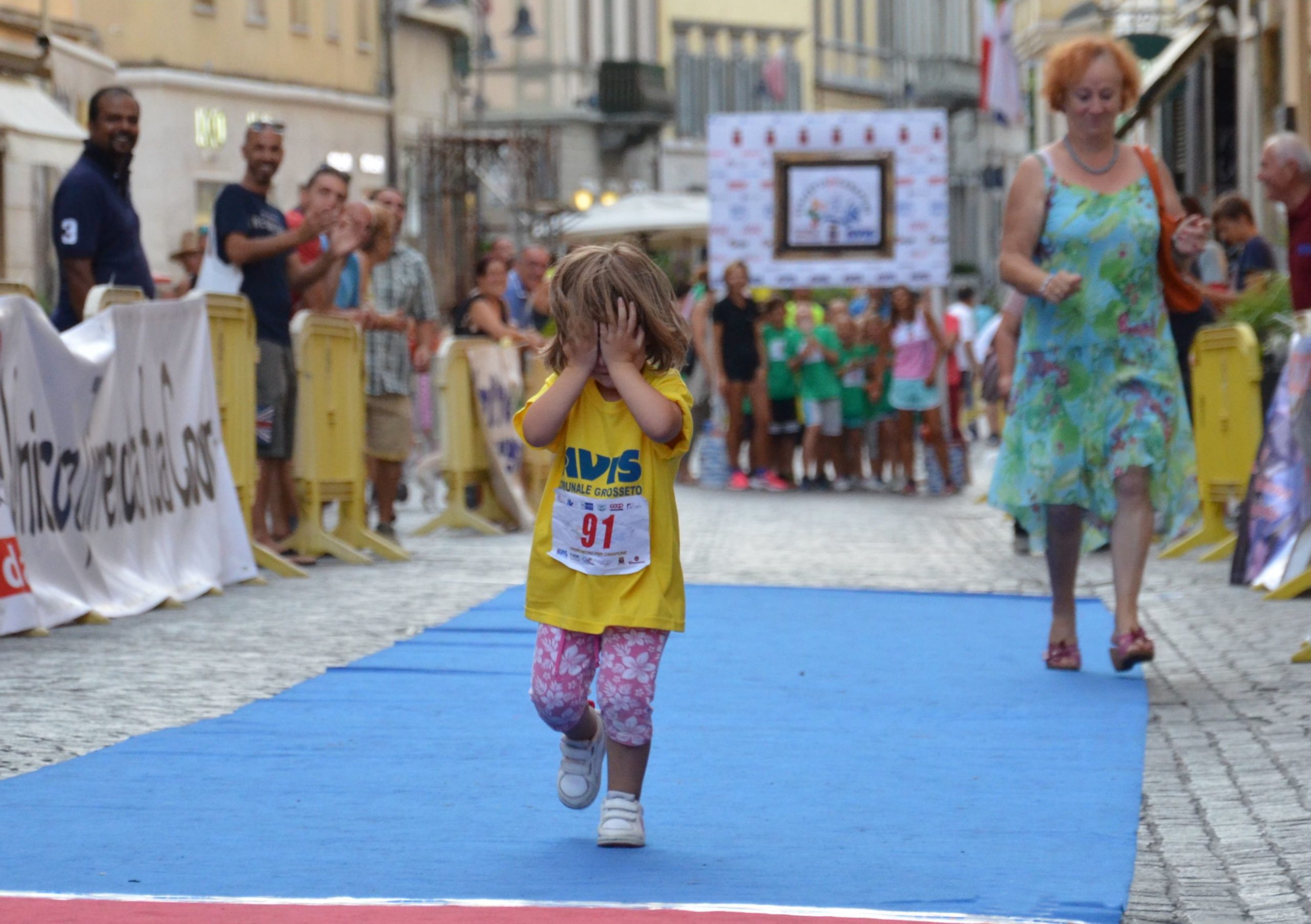 A Braccetto della più conosciuta “Staffetta di Canapone” disputata mercoledì scorso a Grosseto, sta prendendo quota la prova di 60 metri per bambini da 1 a 10 anni, partita qualche ora prima. Anche quest’anno circa 200 bambini si sono presentati al via di questa particolarissima prova. Timidi o esuberanti, da soli o tenuti per mano, sorridenti o in lacrime. Tutti protagonisti, comunque, e pronti a recitare per quindici secondi quel ruolo da protagonista davanti al microfono e intervistati e premiati a fine della prova. Maurizio Ciolfi, presidente del Marathon Bike ne va fiero “Come abbiamo fatto con successo con la Staffetta -dice – abbiamo cercato di creare una manifestazione unica nel suo genere anche per i bambini e la stiamo riproponendo con successo da 9 anni” . Far partire i bambini uno alla volta, per più di due ore, non è una cosa semplicissima, ma poi alla fine la gioia è tanta nel vedere i bambini tornare a casa con tanto di medaglia e maglie create per l’occasione. Sono solo 60 metri da percorrere per i piccoli, su due tappeti di colore diverso come fosse una gara vera e propria. La cura dei particolari, come la foto ricordo sul podio, rimarrà impressa per sempre nei ricordi di questi piccoli atleti. Non possono mancare i ringraziamenti al Comune di Grosseto, Salus, Banca Tema, Società Banfi e la Cantina Vini di Maremma e tutti quelli che hanno contribuito in qualche modo alla realizzazione dei due eventi. Per questo motivo Marathon Bike,Uisp e Avis ringraziano tutti.