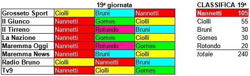 Biancorosso dell’anno “Elettromeccanica Moderna”, 19ª giornata: successo di Nannetti su Ciolli