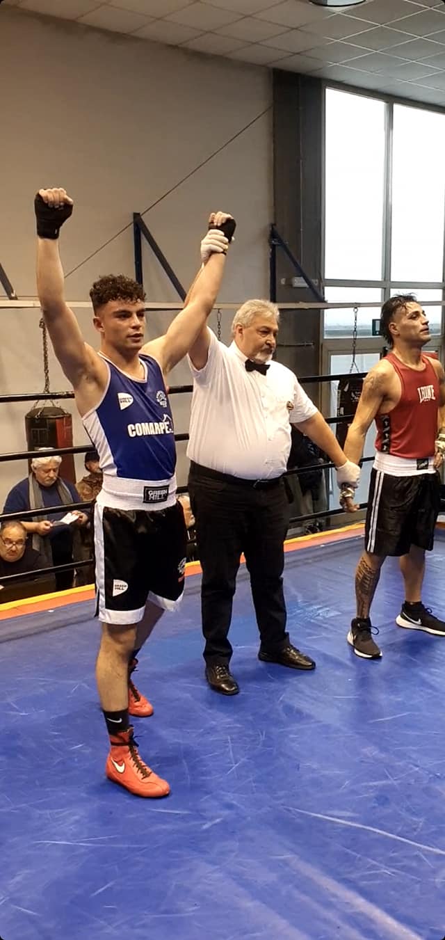 Grosseto – Il pugile Alessandro Madonna, allenato da Raffaele D’Amico, dopo essersi guadagnato l’accesso in finale, nella categoria dei kg. 75 elite, al torneo Nepi di Firenze con la vittoria ai punti sul lombardo Youssef Bchir, vince la finale contro il pontederese Andrea Vicedomini, prima del limite nella terza ripresa. Match maschio dove il “Fighter” grossetano ha guadagnato il centro del ring e ha imposto il suo ritmo con colpi possenti. Battaglia accettata dall’ avversario e pagata con un prezzo davvero alto, avendo subito due conteggio nel corso della seconda ripresa ed altri due nel corso della terza che hanno costretto l’arbitro ad interrompere il duro scontro, come da regolamento, con l’assegnazione della vittoria al pugile grossetano. Un altro pugile in crescita nella famiglia della Fight Gym Grosseto per la gioia del presidente Amedeo Raffi che segue sempre da vicino le prestazioni dei suoi atleti.