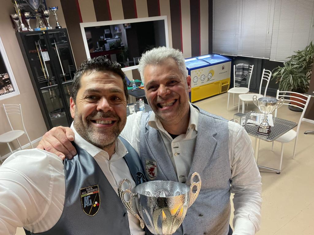 La coppia maremmana si aggiudica la quarta prova valida per la qualificazione ai campionati italiani a coppie dopo un ottimo girone eliminatorio. Francioli e Neri hanno avuto ragione della concorrenza nel girone finale dove erano presenti i migliori giocatori toscani di eccellenza. “Giornata fantastica” commenta Francioli che dopo un inizio sofferto si è imposto sulla coppia fiorentina Giovanni Messeri ed a seguire in finale contro il nazionale Agnorelli e Guidi. Risultato che proietta la coppia grossetana nelle prime posizioni della classifica regionale di categoria. “Siamo felici del grande risultato sofferto e inaspettato, ma dobbiamo dire che siamo una coppia affiatata ed abbiamo espresso un ottimo livello di gioco”. I due atleti ringraziano l’associazione sportiva Accademia Grosseto che ha permesso loro di allenarsi in uno degli impianti più belli della provincia con sei tavoli da biliardo in via Zircone 20/1 a Grosseto.