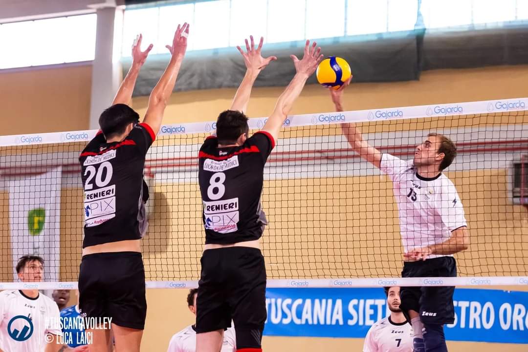 2^ Set: Pontedera torna in campo deciso a pareggiare i conti e i grossetani subiscono il gioco degli avversari che vanno in vantaggio per 7/3.I padroni di casa non riescono a conquistare il cambio palla necessario per pareggiare i conti. “Ace” di Alessandrini e maremmani a -2 dalla squadra ospite. Il tecnico di Pontedera è costretto a chiedere tempo di sospensione, che sembra avare l’effetto dovuto, visto che gli ospiti ritornano avanti per 10/7. Grosseto prova ad arginare gli attacchi dei giocatori avversari con Lazzeroni che si appoggia spesso a Lumini e il punteggio è di 13/9. Grossetani sempre indietro di 5 punti. Esce De Matteis dentro Rossi. Pontedera in vantaggio per 19/13. Coach Rolando è costretto a chiedere tempo, ma i pisani non mollano e aumentano il loro vantaggio fino al 21/15. Esordio per il giovane Davide Rescio classe “2005”. Grosseto prova a rientrare in partita. Il secondo set si chiude con il successo degli ospiti per 25/20.