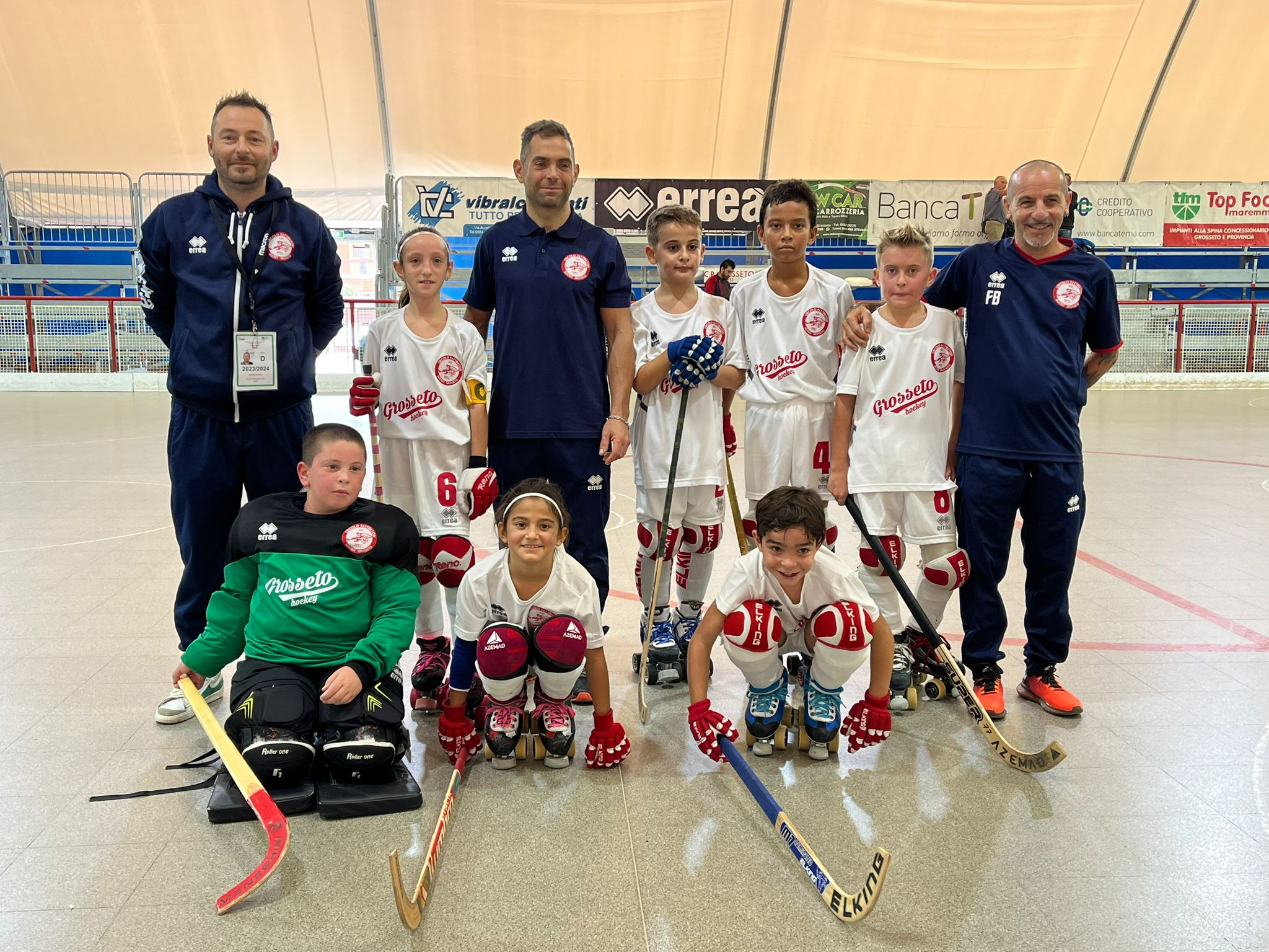 Il fine settimana delle formazioni giovanili del Circolo Pattinatori si chiude con una bella vittoria (dopo quella degli U13 contro il Sarzana) nel derby della categoria U11. Il Grosseto di Fabio Bellan, trascinato da Alice Sorbo (quattro reti), ha avuto la meglio del Follonica. Il match si è risolto nella ripresa, dopo che i primi quindici minuti si sono chiusi sul 4-4, dopo una bella alternanza di punteggio. I bambini azzurri di Franco Polverini si sono portati sul 2-0 nel giro di 9 secondi (reti di Rosadini a 1’55 e Barracani a 2’04), prima della bella reazione locale che grazie alla doppietta di Spinosa e alle reti di Bucciacchio e Sorbo s’è portato sul 4-2. La doppietta di Azzempamber ha rimesso in parità la gara, ma nella ripresa il Circolo Pattinatori ha messo a segno un altro break che gli ha permesso di volare sull’8-4 e di ottenere un chiaro successo. Disco rosso per la compagine U15 guidata da Emilio Minchella, che alla prima uscita è stata nettamente superata dai Pumas Viareggio, che al riposo erano già sul 7-0.