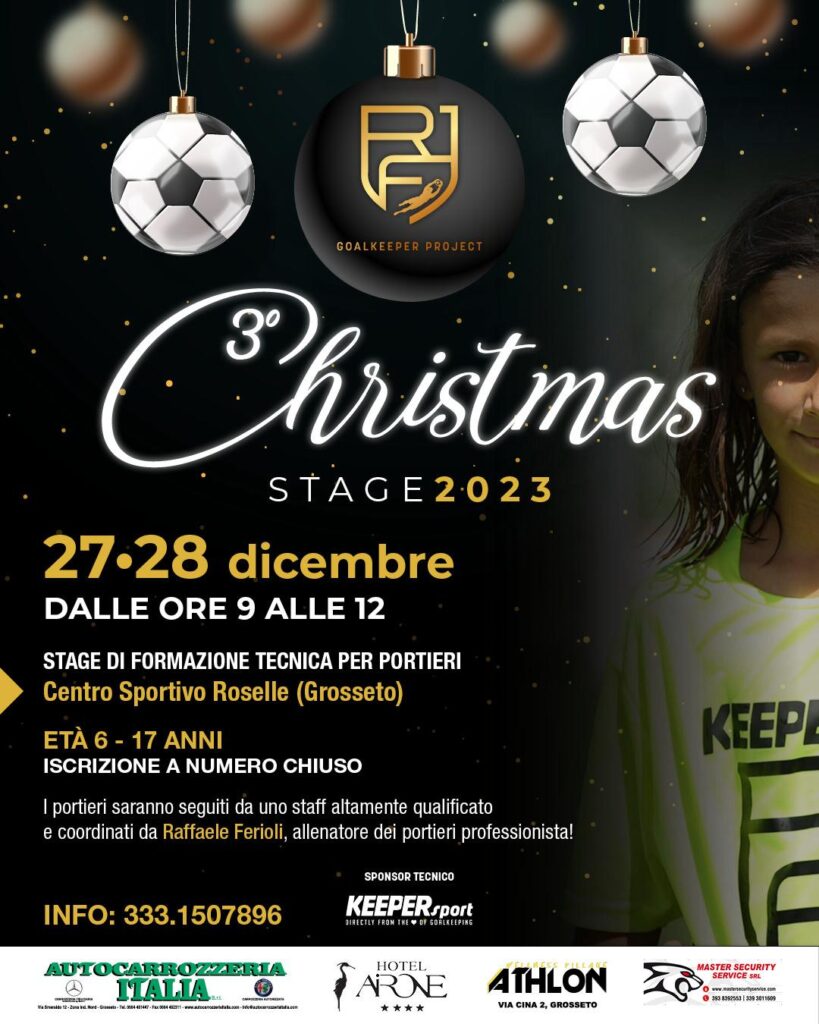 Martedì 27 e mercoledì 28 dicembre ritornerà, per il terzo anno consecutivo, il Christmas stage dedicato esclusivamente al ruolo del portiere. Questa volta, grazie alla disponibilità di Iacopo Tonelli e di tutto l’Us Grosseto per aver messo a disposizione la struttura, sarà il centro sportivo di Roselle ad accogliere i futuri numeri uno provenienti da tutto il nostro comprensorio e non solo. I giovani estremi difensori per due mattine consecutive saranno seguiti da uno staff altamente qualificato, coordinato come sempre da Raffaele Ferioli, allenatore dei portieri professionista. Ricordiamo che Ferioli è stato per cinque stagioni l’allenatore dei portieri dell’Us Grosseto, poi lo scorso anno ha avuto una bella esperienza in Sicilia, col S. Agata di Militello, mentre in questa stagione è allo United Riccione. Come sempre, sono bastati pochi giorni per ottenere il massimo delle adesioni allo stage in questione. Numeri che gratificano il lavoro che con passione e professionalità viene svolto non solo da Raffaele Ferioli, ma anche dai suoi colleghi professionisti, i quali, ormai da anni, sia a Natale che col camp estivo, mettono a disposizione di tutti gli iscritti le loro competenze e il loro amore per questo ruolo così fondamentale.