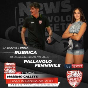 Gs-Tv. Primo appuntamento del 2024 con “Pallavolo Grosseto News” l’unica trasmissione dedicata interamente al volley femminile, realizzata in collaborazione con la società Pallavolo Grosseto. In studio con Massimo Galletti, l’allenatore dell’under 18 e secondo in Serie B2 Antonio Castellano e il centrale Sofia Luschi. Vi aspettiamo in diretta streaming su Grossetosport, sul canale You Tube GS TV e Pallavolo Grosseto. Regia, montaggio e riprese di Fabio Lombardi