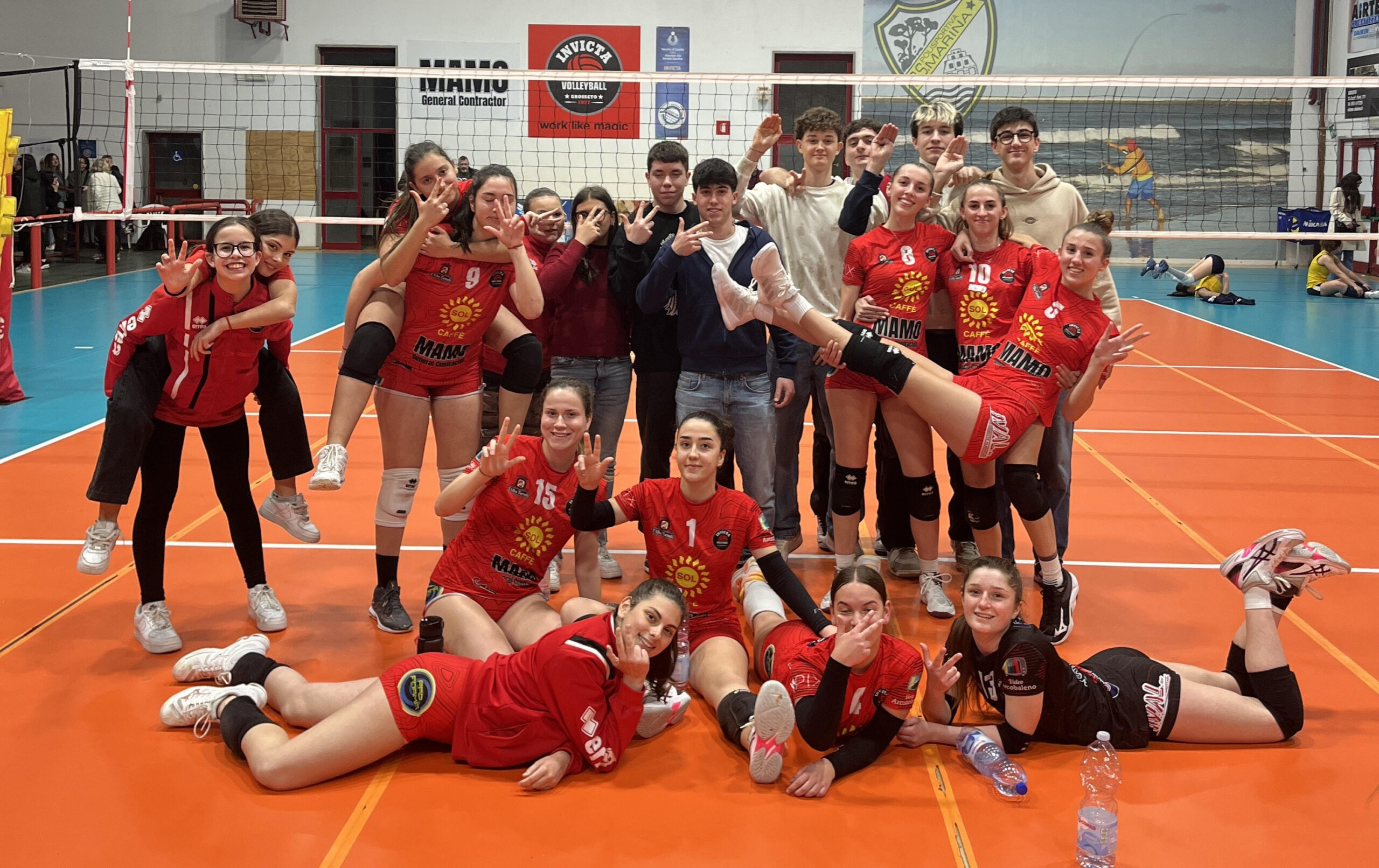 L’ Invictavolleyball femminile di Prima Divisione è ad un passo da chiudere la regular season. Con il diciannovesimo sigillo consecutivo le ragazze grossetane toccano quota 55 punti ed ipotecano seriamente il primo posto in campionato. A Marina arriva il Cus Pisa a impensierire le padrone di casa solo nel terzo set perso per un break. Una buona partita giocata dalle ragazze dei coach Stefano Spina e Andrea Chiappelli che gestiscono sempre il ritmo, confortata dalle buone le prestazioni del libero Coratti, il centrale Petrucci e in generale di tutte le ragazze scese in campo. “Arriviamo alla pausa di Pasqua nel migliore dei modi” commentano i due allenatori soddisfatti “ Ieri sera abbiamo giocato una buona gara. Le ragazze hanno fatto vedere una buona pallavolo e di questo siamo contenti. E’ la dimostrazione che stanno crescendo. Adesso ci bastano tre punti per essere matematicamente primi, e iniziare la fase dei playoff nel migliore dei modi. Avremo a disposizione cinque gare”. Giovedì ultimo impegno in under 18 contro la corazzata Montelupo Fiorentino, favorita per la conquista del titolo regionale e poi la squadra grossetana sarà impegnata dal 29 marzo al 1 aprile al prestigioso torneo internazionale del Cornacchia World Cup a Pordenone. Un torneo ad invito, dove le migliori formazioni giovanili d’Italia e non solo, si misurano in una manifestazione di altissimo livello. Le maremmane sono state inserite nel girone F insieme ad alla squadra inglese “Club Storm”, belga “Volley Haarsrode Leuven” e la squadra locale proveniente da Cordenons. Invictavolleyball Prima Divisione femminile: Sara Alfieri , Margherita Andreini, Giovanna Ambrosecchio, Carlotta Bosi, Carolina Bianco, Giulia Cappelli, Sofia Coratti (L), Lara Pettorali, Matilde Petrucci, Valentina Rolando, Veronica Rolando (K), Marica Saviello. Allenatori: Stefano Spina e Andrea Chiappelli
