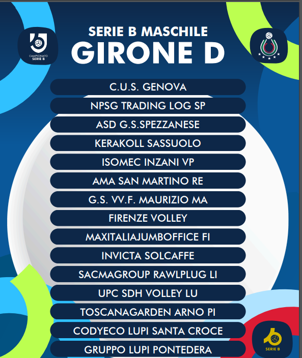La Federazione pallavolo ha pubblicato i gironi della serie B maschile. L’Invictavolleyball è stata inserita nel girone D, che comprende squadre liguri emiliane e toscane.
