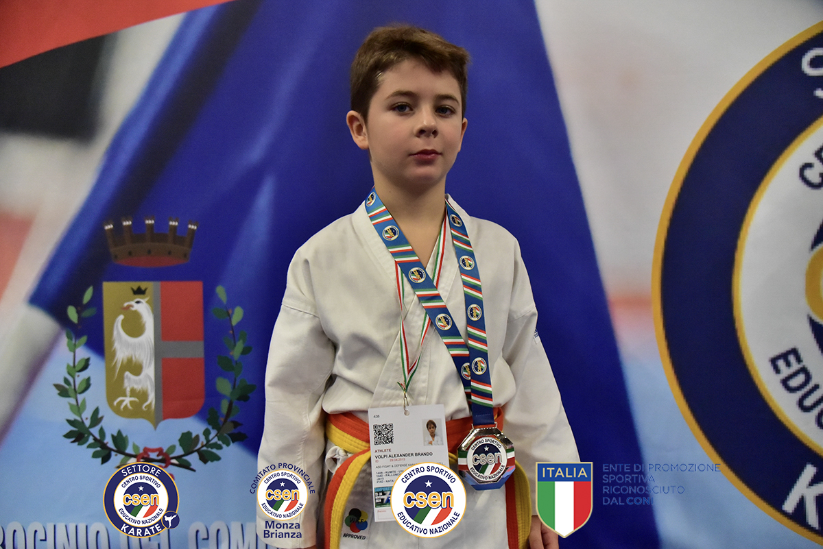 Alexander Brando, cintura gialla/arancio, alla prima gara importante,eccelle in tutte le specialità,con un sesto