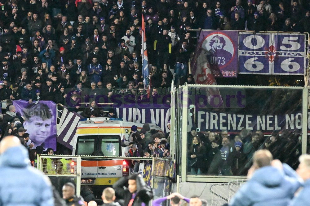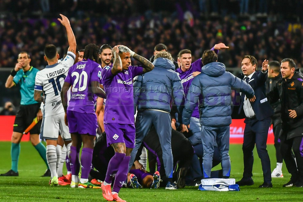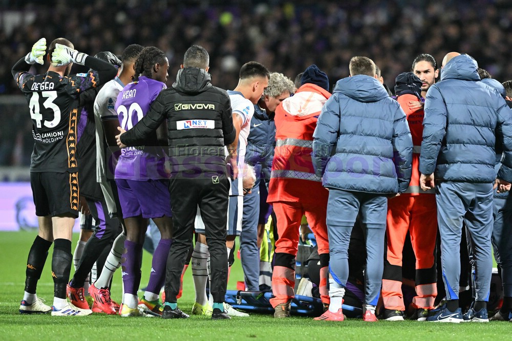 Tutto fermo al Franchi di Firenze. Bove, centrocampista viola, si è accasciato al suolo privo di sensi. Immediati i soccorsi e sfida interrotta.