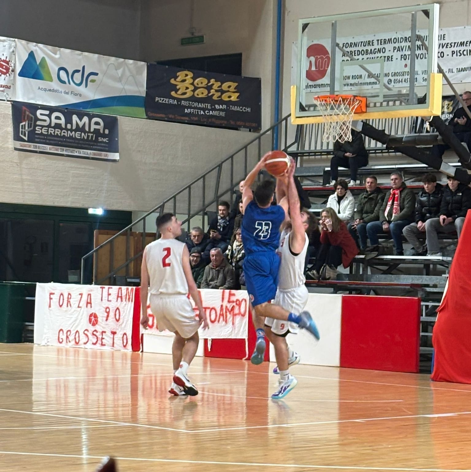 Il primo quarto a rilento e senza idee finisce 17-17. Nulla cambia nel secondo con i follonichesi che chiudono il periodo in vantaggio 29-36. Nella seconda parte di gara, il Team 90 riesce a ridurre il divario a 49-50. Nell’ultimo quarto i biancorossi cercano di portare a casa la vittoria andando anche in vantaggio ma non riuscendo a gestirlo nel migliore dei modi possibili lasciando l’intera posta ai follonichesi che hanno avuto il merito di affrontare la capolista senza imbarazzi, chiudendo per 55-64. I biancorossi mantengono la vetta con 12 vittorie e 3 sconfitte. Prossimo appuntamento domenica 9 febbraio in casa del DLF Firenze basket.