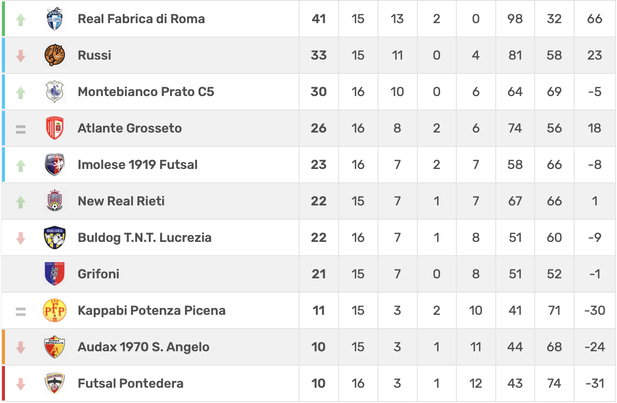 Con questo punto l’Atlante Grosseto consolida il quarto posto con 26 punti.