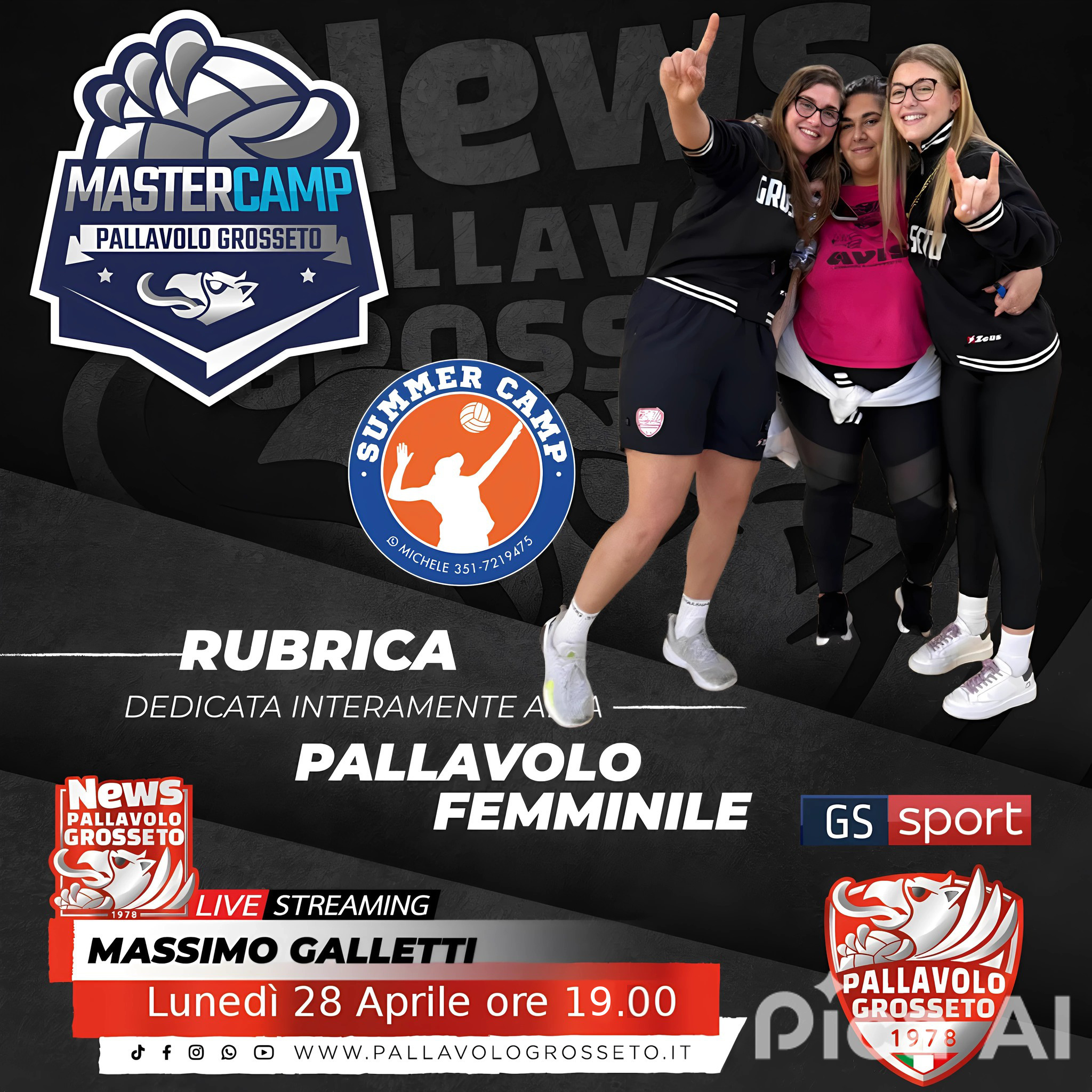 Gs-Tv. L’ appuntamento di lunedì in diretta con “Pallavolo Grosseto News”, trasmissione realizzata in collaborazione con la società Pallavolo Grosseto è spostato alle ore 19,00. “Pallavolo Grosseto News”, è l’unica trasmissione in diretta dedicata interamente al volley femminile. Ospiti in studio con Massimo Galletti, i due tecnici del settore giovanile, Elisabetta Alberti Federica Brizzi, che faranno il punto sulla stagione che volge al termine e sulla prossima. La trasmissione si può seguire in diretta streaming su Grossetosport, sul canale You Tube di GS-TV e Pallavolo Grosseto. La regia, il montaggio e le riprese sono di Fabio Lombardi.
