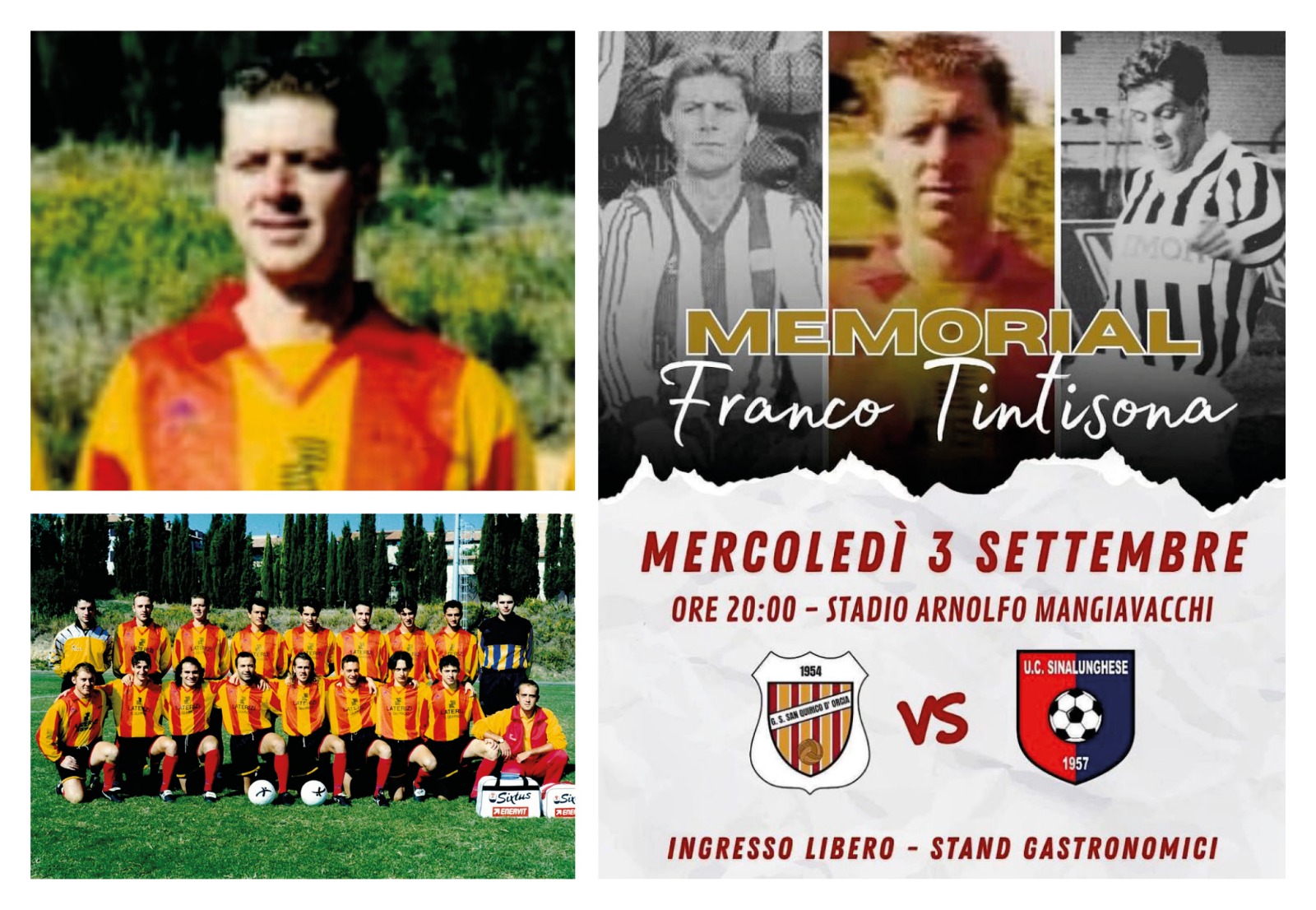 Un appuntamento con la storia e con il cuore per i colori giallorossi. Infatti, alle ore 20 di domani, mercoledì 3 settembre, ci sarà la partita-memorial contro la Sinalunghese intitolata a Franco Tintisona.