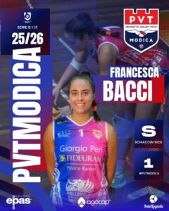 Dopo tre anni con la Pallavolo Grosseto, Francesca Bacci lascia la società biancorossa e approda in serie B1. Si dividono le strade tra la Pallavolo Grosseto e l’attaccante Francesca Bacci. L’ex attaccante biancorossa approda in B1 con la società siciliana del Pvt Modica Progetto Volley Team.