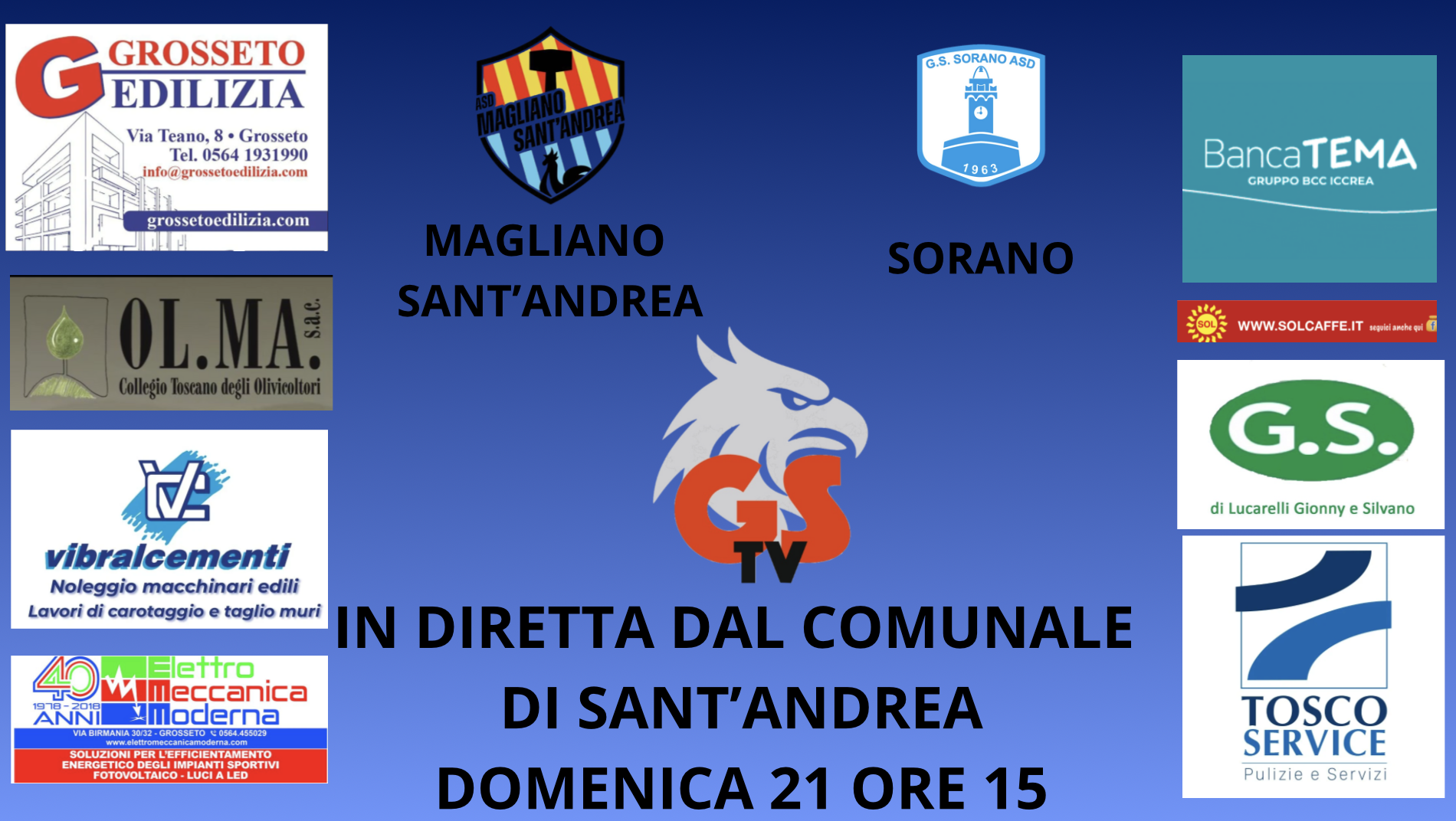 Grosseto – Le telecamere di Gs Tv saranno domenica in quel di Sant’Andrea allo stadio Comunale per farvi vivere le emozioni di Magliano Sant’Andrea – Sorano.