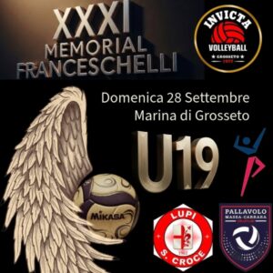 Tutto pronto per la nuova edizione del Memorial Franceschelli. Il torneo giunto alla sua 31^ edizione è organizzato dalla società Invictavolleyball per ricordare il giovane Franco, centrale della squadra grossetana scomparso tragicamente. A sfidarsi domenica 28 settembre nella palestra di Marina di Grosseto, le formazioni under 19 dell’Invictavolleyball, Lupi Santa Croce, Volley Prato e Pallavolo Massa. Al termine della manifestazione le premiazioni con il premio speciale dedicato al migliore “Centrale” della manifestazione, ruolo in cui giocava il giovane Franco.