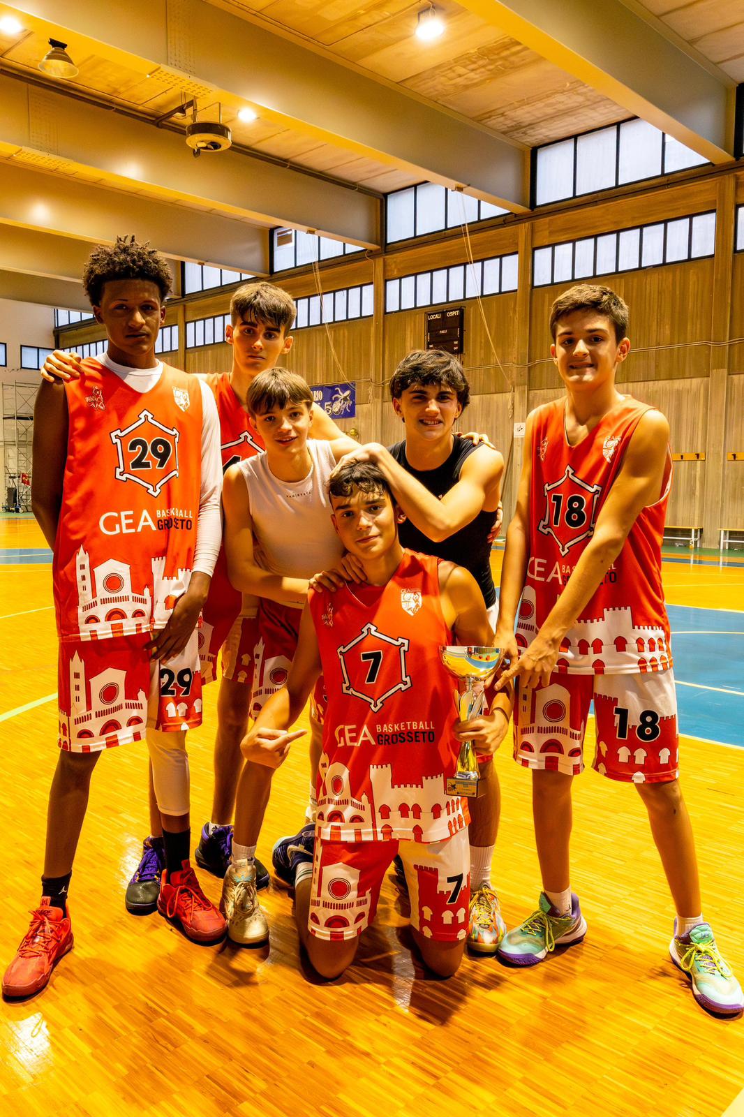 L’inizio della partita è buono per i biancorossi, che partono subito forti soprattutto con Peralta e Monticini, autori dei primi punti del match. Il Donoratico dopo un paio di minuti trova il ritmo giusto e passa in vantaggio mettondo in difficoltà i biancorossi. Il secondo tempo rimane sulla stessa linea. I gialloblu conducono la gara. ma i grossetani non mollano, e riducono lo svantaggio, grazie a Peralta, Martini e Danti in fase offensiva. In evidenza la grinta del vicecapitano Grascelli e di capitano Fommei in fase difensiva e nel creare le situazioni di gioco. I grossetani vanno all’intervallo sotto di 7 punti, ma la partita non è finita. Arriva un ottimo terzo tempo dei biancorossi, che recuperano e giocano punto a punto, grazie ai giocatori chiamati in causa dai coach. Il quarto tempo è tutto da vedere. I biancorossi passano in vantaggio, ma vengono rimontati dal Donoratico e la partita si gioca punto a punto. A un minuto e mezzo dalla fine della partita i gialloblu sono in vantaggio di 4 punti, ma i grossetani non mollano. Da una rimessa effettuata da Tronchi, la palla arriva a Peralta, con il tiro da tre. porta al -1 il match. L’ultimo minuto del confronto è intenso e molto teso, con i biancorossi che lottano per vincere la partita. Da segnalare su tutti Danti e Martini, che si buttano su ogni pallone e conquistano gli ultimi punti del match. Arriva la vittoria nel torneo per i giovani della Gea. A fine gara, grande festeggiamento dei ragazzi e dei coach in campo e dei genitori sugli spalti. Bella la prova in campo dei ragazzi, chiamati in causa e ognuno risultando decisivo per conquistare il trofeo della manifestazione.
