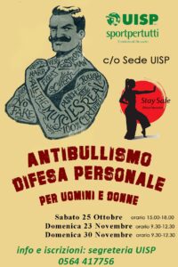Il corso “Antibullismo e difesa personale” è un’iniziativa rivolta a donne e uomini che punta a offrire strumenti pratici ed efficaci per la prevenzione e il contrasto di episodi di bullismo e violenza. L’appuntamento è nella sede Uisp di viale Europa a Grosseto, con tre incontri previsti: sabato 25 ottobre dalle 15 alle 18, domenica 23 novembre e domenica 30 novembre dalle 9.30 alle 12.30.
