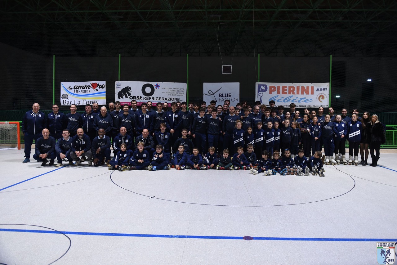 CASTIGLIONE. L’Hockey club Castiglione si è ritrovato per festeggiare, con qualche giorno d’anticipo, il Natale. Come ogni anno il Casa Mora si è animato, fra il settore del pattinaggio artistico e quello dell’Hockey, con tantissimi familiari che hanno assistito alla presentazione in pista di tutte le componenti, staff tecnico e dirigenti.