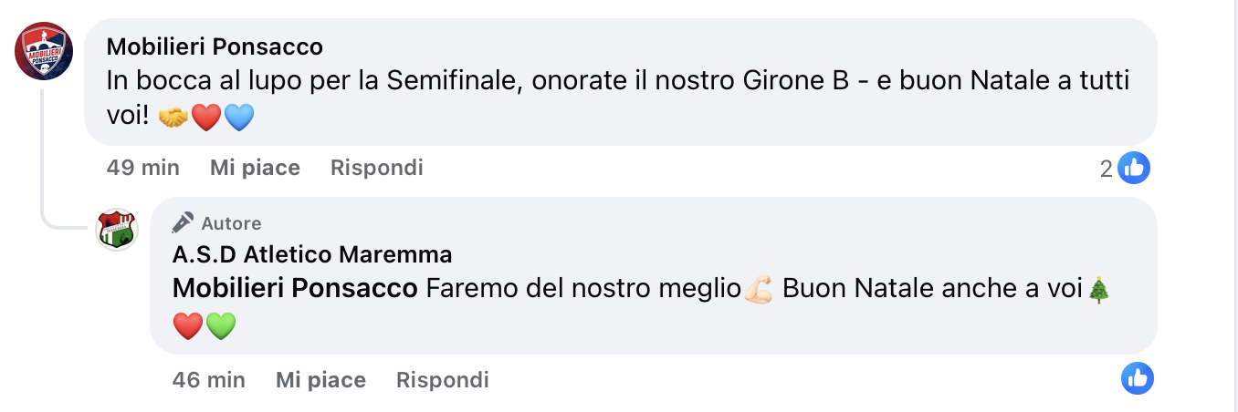Grosseto – Altro gesto fair play nel girone “B” del campionato di Promozione. Dopo i complimenti  fatti dal Barberino Tavarnelle al Massa Valpiana dopo la sconfitta interna per 0 a 4, ieri dopo la prima sconfitta stagionale ed eliminazione ai quarti di finale di Coppa Italia del Mobilieri Ponsacco, la dirigenza rossoblù ha mandato un grosso in bocca al lupo all’Atletico Maremma e la speranza di onorare al meglio il raggruppamento di cui le due società fanno parte.