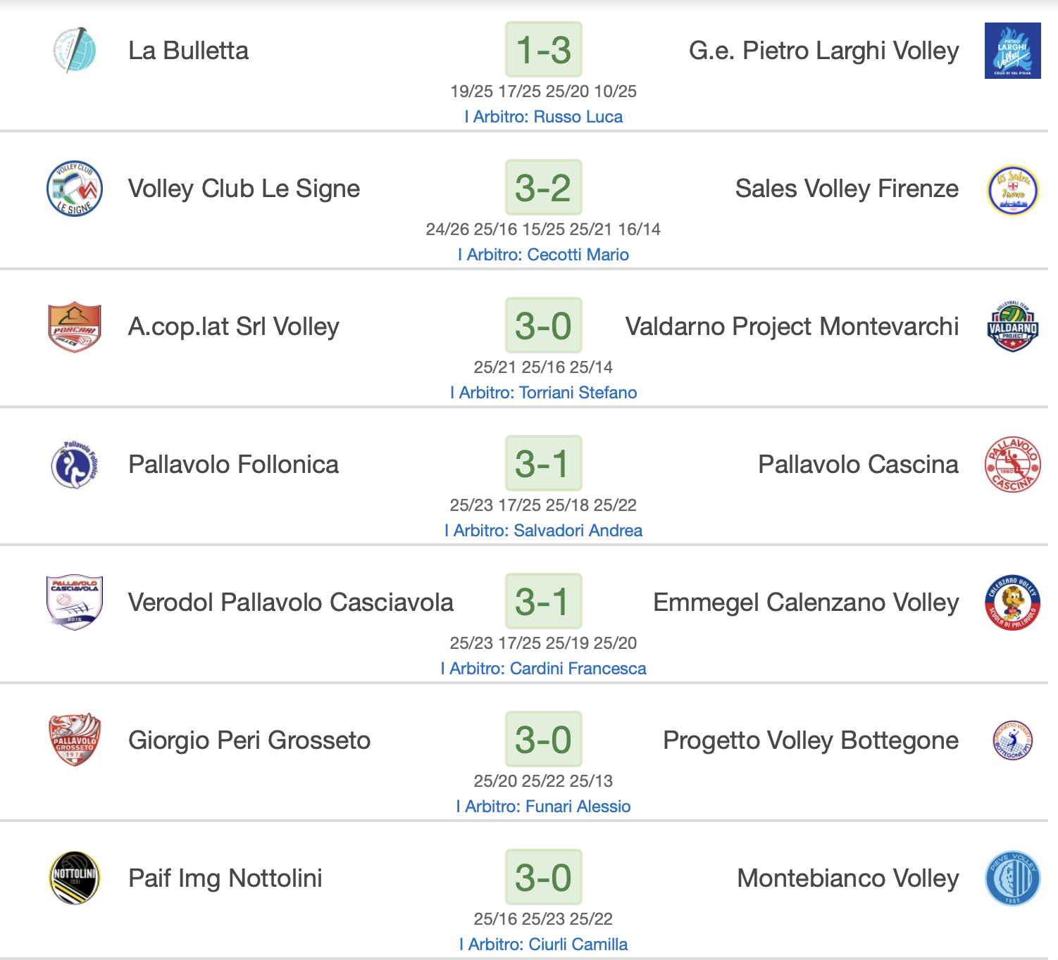 Sestetti in parità fino al 12 pari nel corso del secondo set, poi il Giorgio Peri passa a condurre e ci rimane fino alla fine del parziale, che pareggia il conto dei set.
