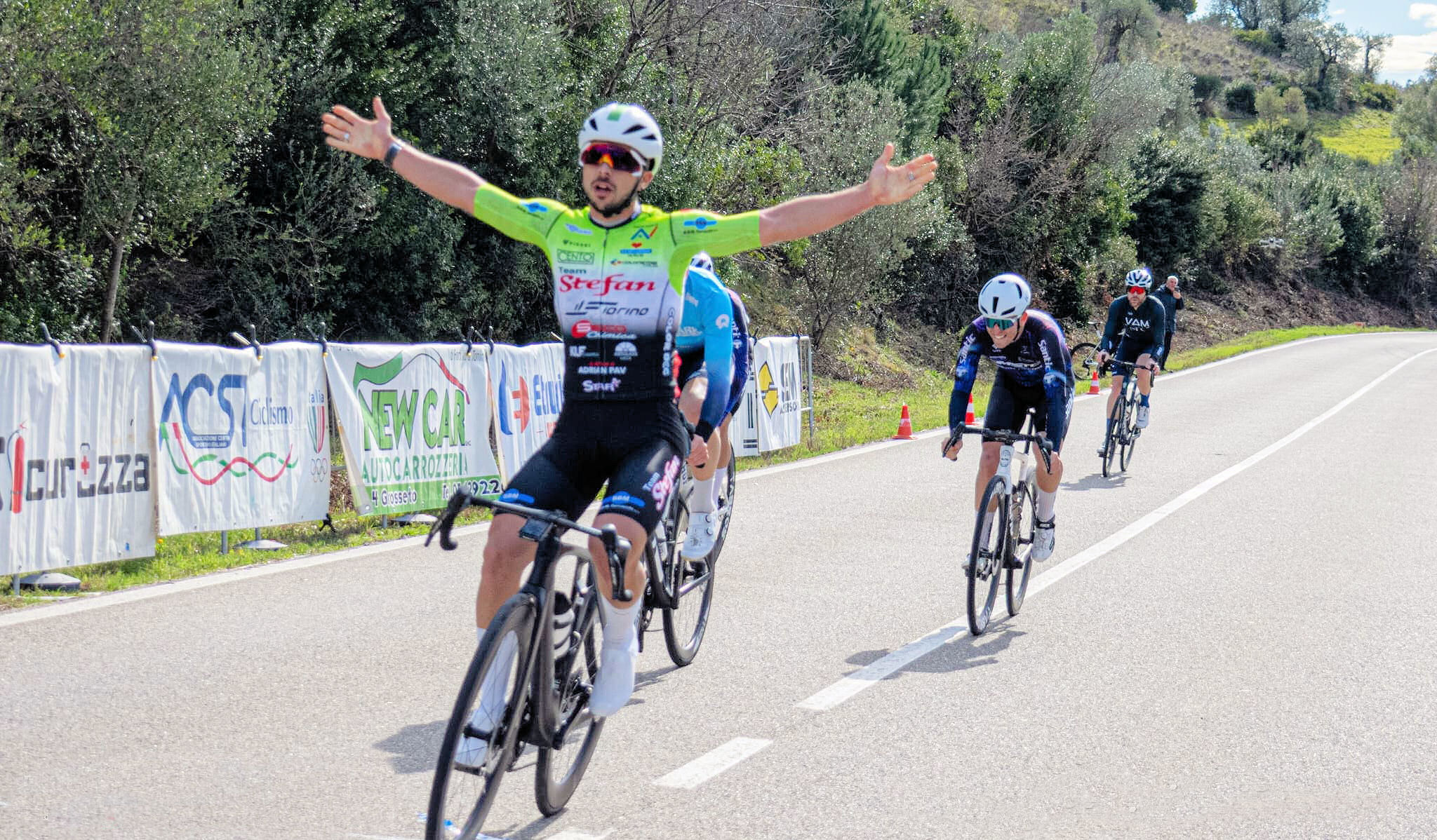 Samuele Luppichini della Stefan e Raimondas Rumsas della Belle Equipe vincono il trofeo “Bastione Rimembranza. La manifestazione di ciclismo amatoriale valida anche come quarta prova del “Corri in Provincia”, ha visto alla partenza domenica scorsa a Ribolla, 108 corridori provenienti da tutto in centro Italia. Come sempre la gara è stata organizzata dal Marathon Bike – Acsi con il patrocinio della a Provincia di Grosseto supportata dalla Banca Tema e Cantina Vini di Maremma. Una giornata davvero bella in tutti sensi con tanti corridori al via. L’elevata partecipazione ha costretto gli organizzatori a predisporre due partenze nonostante il percorso non avesse mai dato nessun tipo di problemi in passato. Anche l’arrivo fatto a un chilometro dall’abitato di Montemmassi è uno dei più belli e sicuri, con gli ultimi 500 metri al 4% di dislivello.