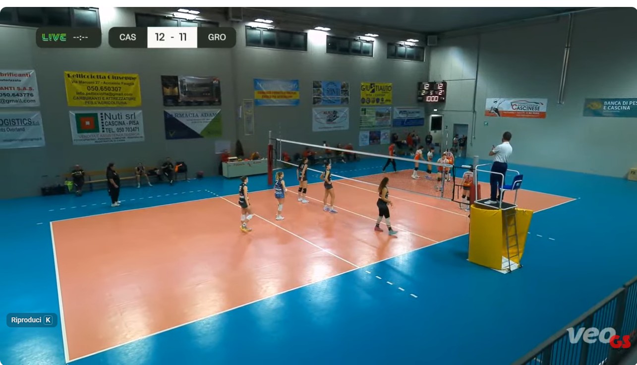 4^ Set: E’ buona la partenza della Pallavolo Grosseto in vantaggio per 4/2, ma Cascina non ci sta e pareggia per 7/7. Le padrone di casa continuano a spingere in attacco e vanno a +2. L’attacco di D’Erasmo è a terra e le maremmane accorciano le distanze a -1. Ma la squadra pisana non molla e conquista 6 punti di vantaggio. Le grossetane fanno fatica a conquistare il cambio palla. Le pisane hanno saldamente in mano il set con il punteggio di 21/12. Gambelli mette palla a terra e punteggio cambia in 22/17 per la squadra di casa. 24/17 per Cascina e set point. Il primo è annullato da D’Erasmo, ma la frazione di gioco si chiude con lo stesso punteggio di 25/18 del secondo set, dopo due ore di gioco.