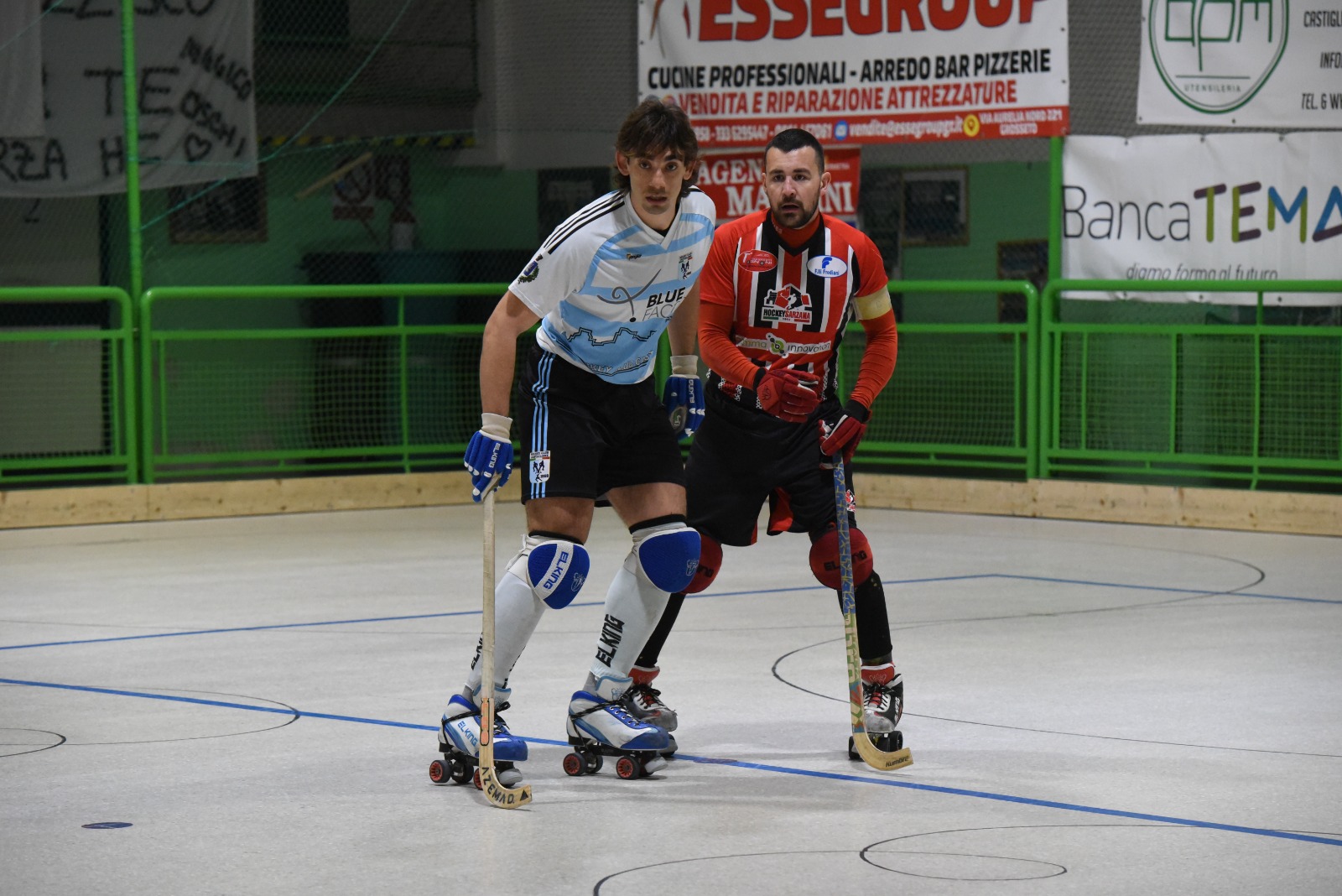 Successo per Blue Factor in serie A2: al Casa Mora nell’anticipo della quattordicesima giornata, il Castiglione batte per 6-1 il Sarzana e lo supera in classifica. Una partita aperta fra i maremmani di Federico Paghi e liguri di coach Giovanni Beretta, con tanti giovani in pista e qualche veterano. Proprio nel Castiglione da segnalare l’esordio nel finale del portiere Michele de Salvatore, appena 14enne, che è riuscito a mantenere inviolata la sua gabbia. Nel Castiglione ancora assente Lorenzo Nobili, infortunato. Pronti via e biancocelesti subito in vantaggio. Il Sarzana perde la pallina con l’infrazione dei 5 secondi, Pippo Montauti serve Piro a sinistra che va in fondo e mette in mezzo con Faelli che dal limite dell’area batte Ale Perroni. 1-0 dopo appena 12 secondi. Il Castiglione insiste. Pallina che circola a centropista, poi Brunelli con il “terzo” occhio imbuca per Filippo Montauti che solo davanti al portiere non sbaglia e mette la sfera sotto la traversa. 2-0 e non sono passati nemmeno 4′. Il Sarzana si scuote e reagisce. Angeletti è contrastato fallosamente da Piro e Galoppi fischia il rigore. Capitan Pistelli cannoneggia e batte Bussotti per il 2-1 dal dischetto. Il Castiglione spreca qualche opportunità mentre il Sarzana avrebbe l’opportunità di pareggiare. Piro ferma fallosamente Lavagetti, e Andrea Montauti per proteste si prende anche un blu. Bussotti para il tiro dal dischetto dello stesso Lavagetti. Nel finale di tempo il Castiglione allunga. Contropiede micidiale, Pippo Montauti per Brunelli che serve alla perfezione Faelli sul secondo palo, 3-1. Poi a una manciata di secondi dalla prima sirena Faelli dalla sponda fa partire Brunelli che vede al limite dell’area Diego Bracali e la conclusione al volo del 14enne non lascia scampo a Ale Perroni, 4-1 e squadre al riposo. Nella ripresa i biancocelesti controllano ma quando affondano creano scompigli nella retroguardia ligure. Scambio ripetuto fra Piro e Diego Bracali con l’attaccante che beffa ancora il portiere, scartandolo alla sua sinistra, per il 5-1. Brunelli completa la sua serata confezionando l’ennesimo assist: a beneficiarne è Santoni che taglia in area e infila il definitivo 6-1. C’è tempo per un paio di cartellini blu a Andreani e poi a Andrea Perroni per proteste, dopo aver steso in area Andrea Montauti. Brunelli non trasforma il rigore. Poi l’esordio fra i pali in serie A2 di Michele de Salvatore. Nella prossima giornata trasferta a Matera per la Blue Factor.