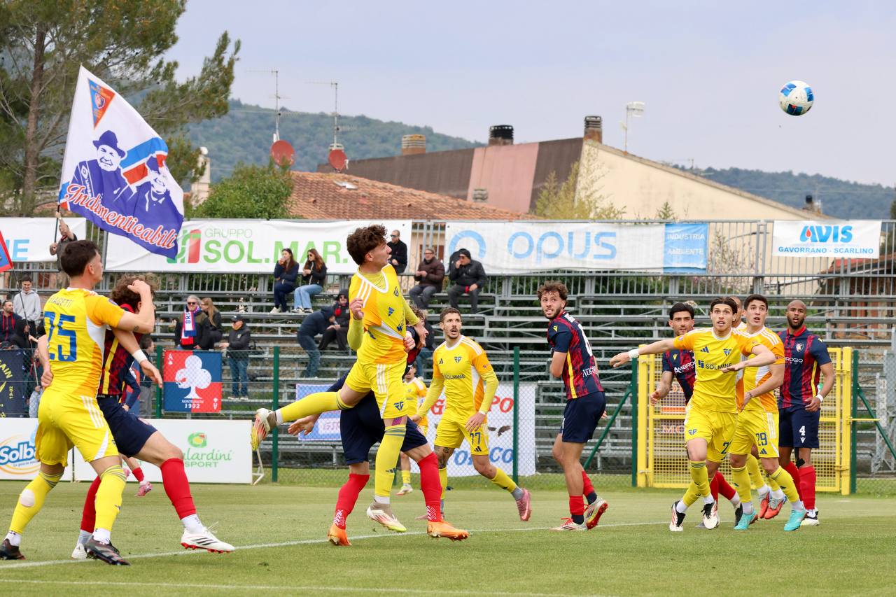 Al 33′ occasionissima per il Follonica Gavorrano, ancora su calcio d’angolo. Rinaldini trova Presta ben appostato, ma il suo colpo di testa termina clamorosamente sopra la traversa.